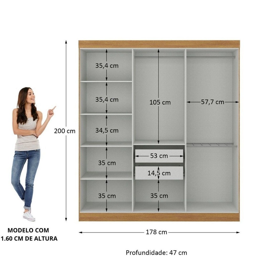 Guarda-roupa Casal 6 Portas 2 Gavetas Paris Cinamomo/Off White