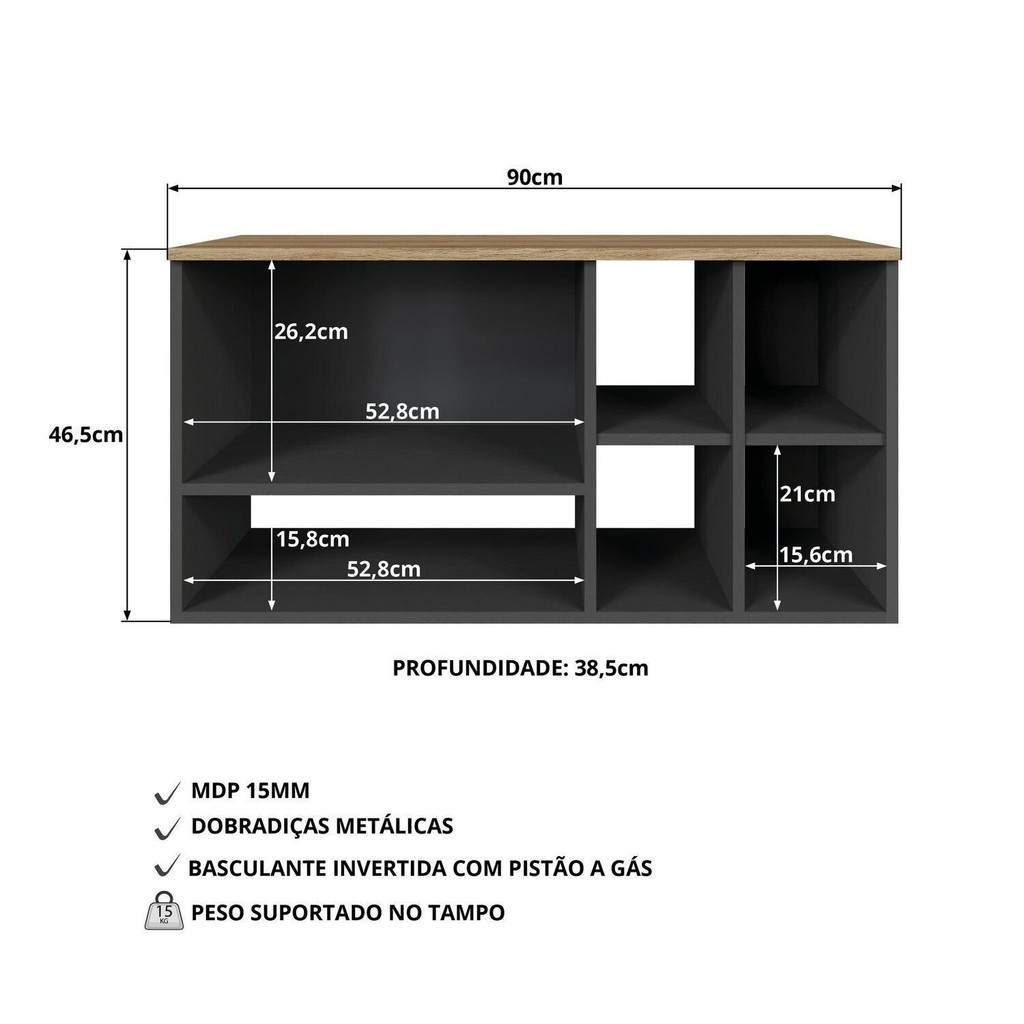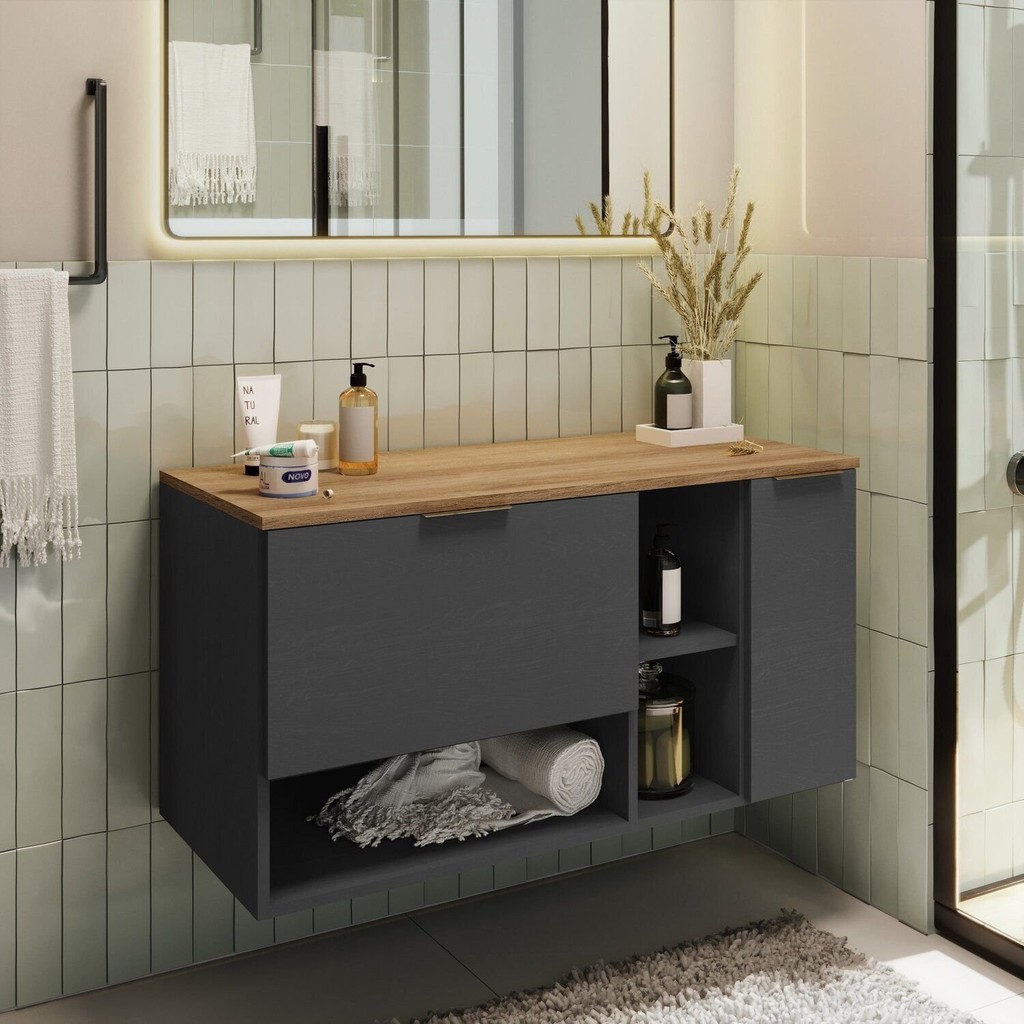 Gabiente para Banheiro Suspenso 2 Portas Grafite/Mel