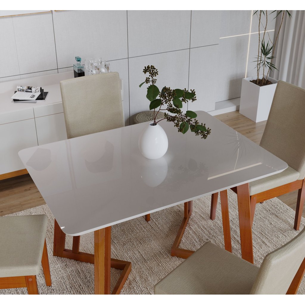 Conjunto Sala de Jantar 4 Lugares Retangular Vidro Madeira Califórnia e Cadeira Dakota Tecido A40 Caramelo
