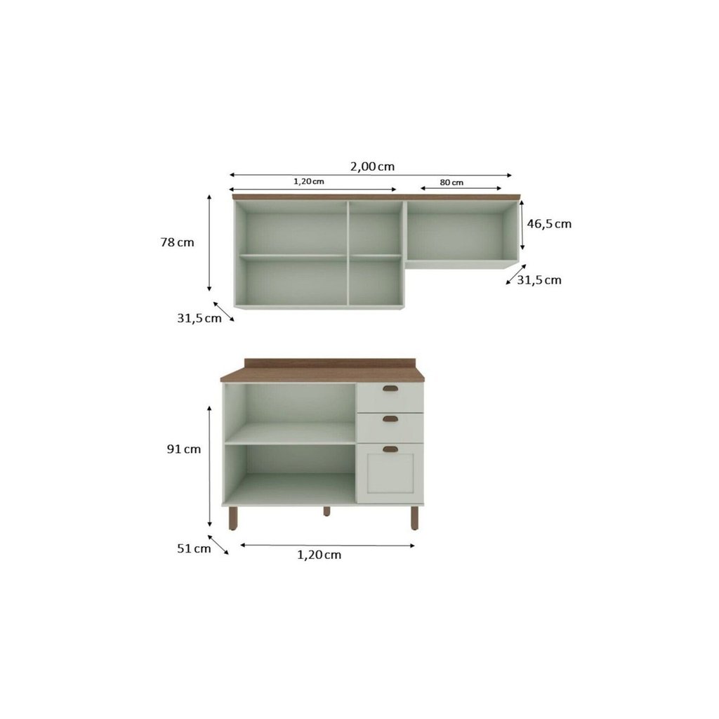Cozinha Flora com 1 Porta Basculante Verde Mint