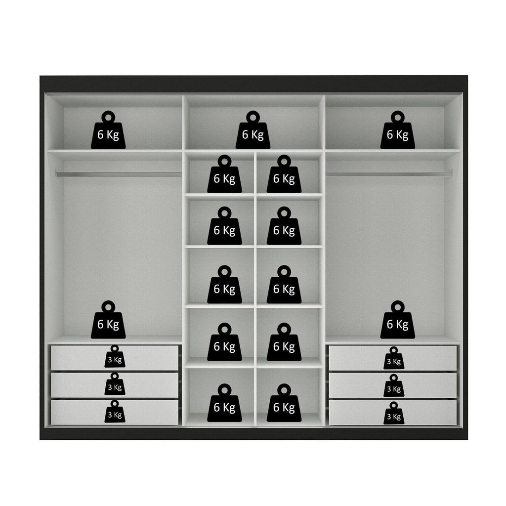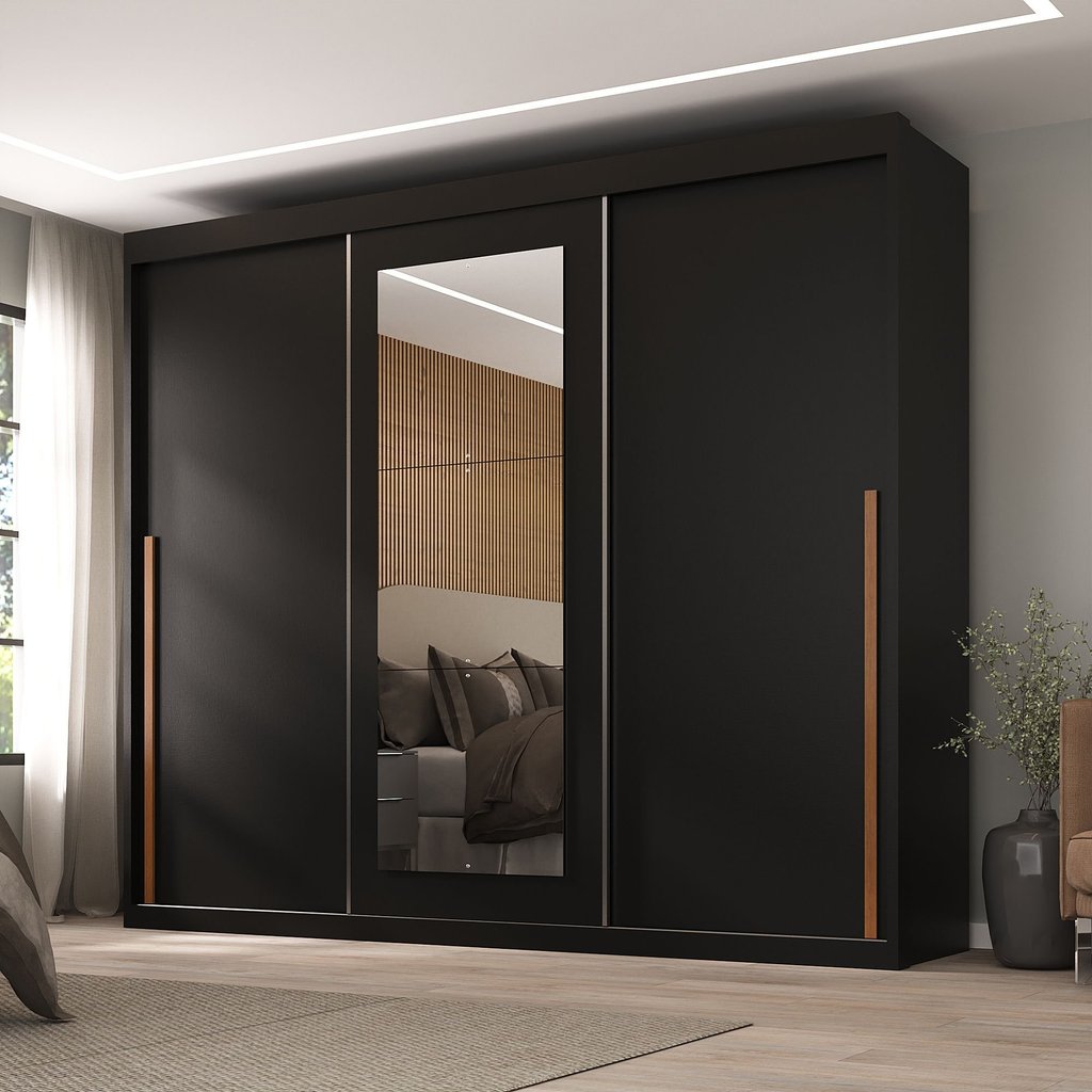 Guarda-roupa Casal 3 Portas de Correr e 6 Gavetas Spazio Preto
