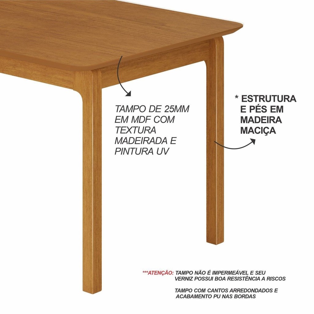 Mesa de Jantar Cativa 120cm X 80cm Retangular 4 Lugares Tampo Mdf 120