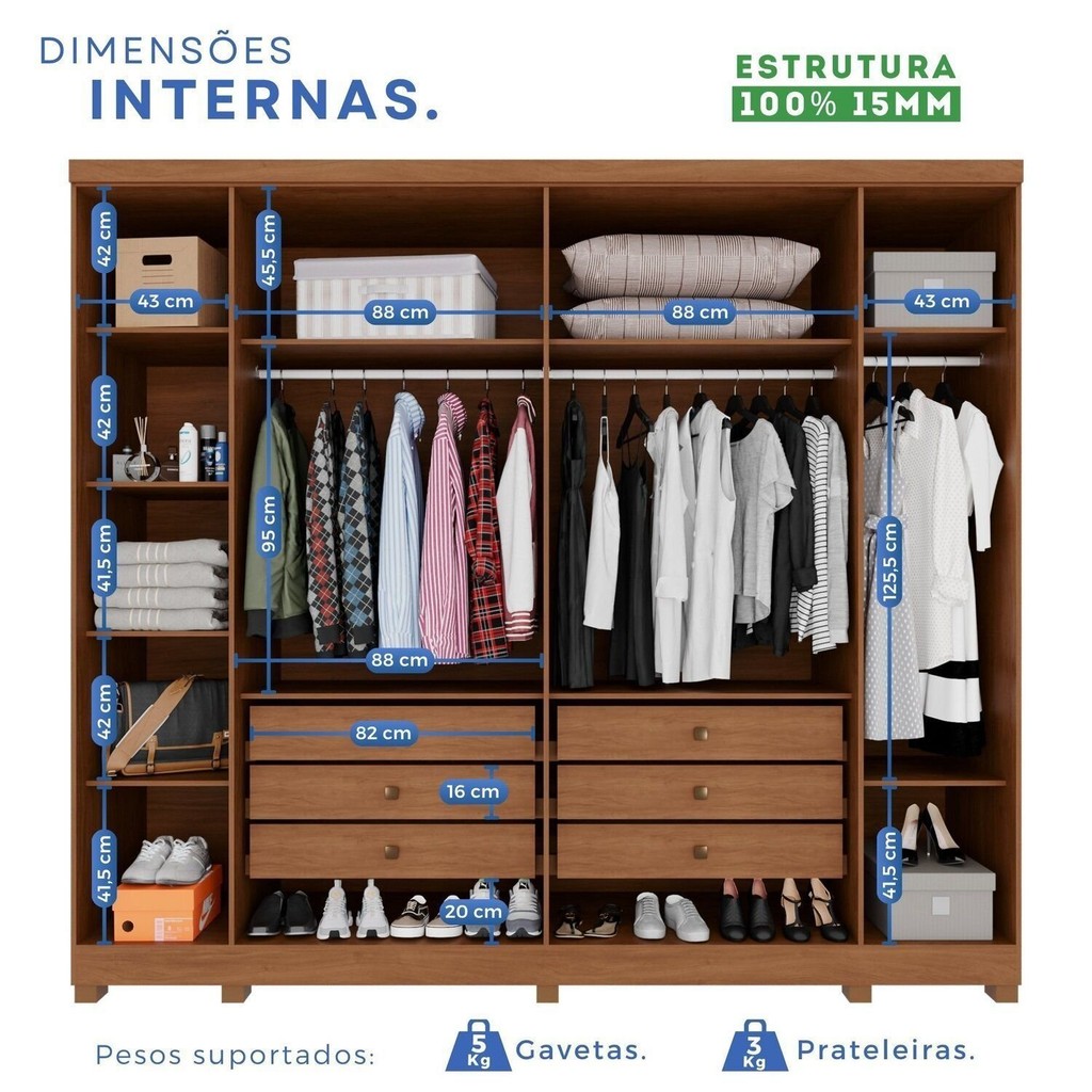 Guarda-Roupa Casal 6 Portas 6 Gavetas com Pés Angra