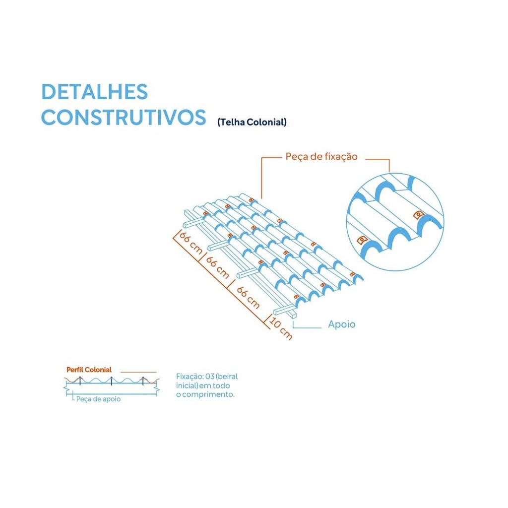 Kit com 5 Telhas de Pvc Colonial 3,28 X 0,86 X 2.0mm 5 Ondas com 3 Kit Fixação e Vedação afort Bege