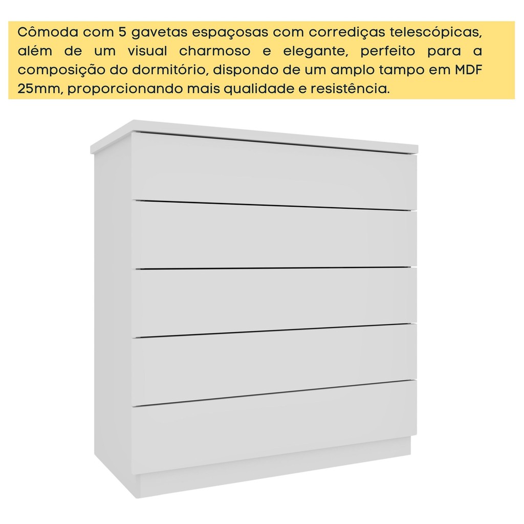 Cômoda 5 Gavetas 86cm Premium Neve