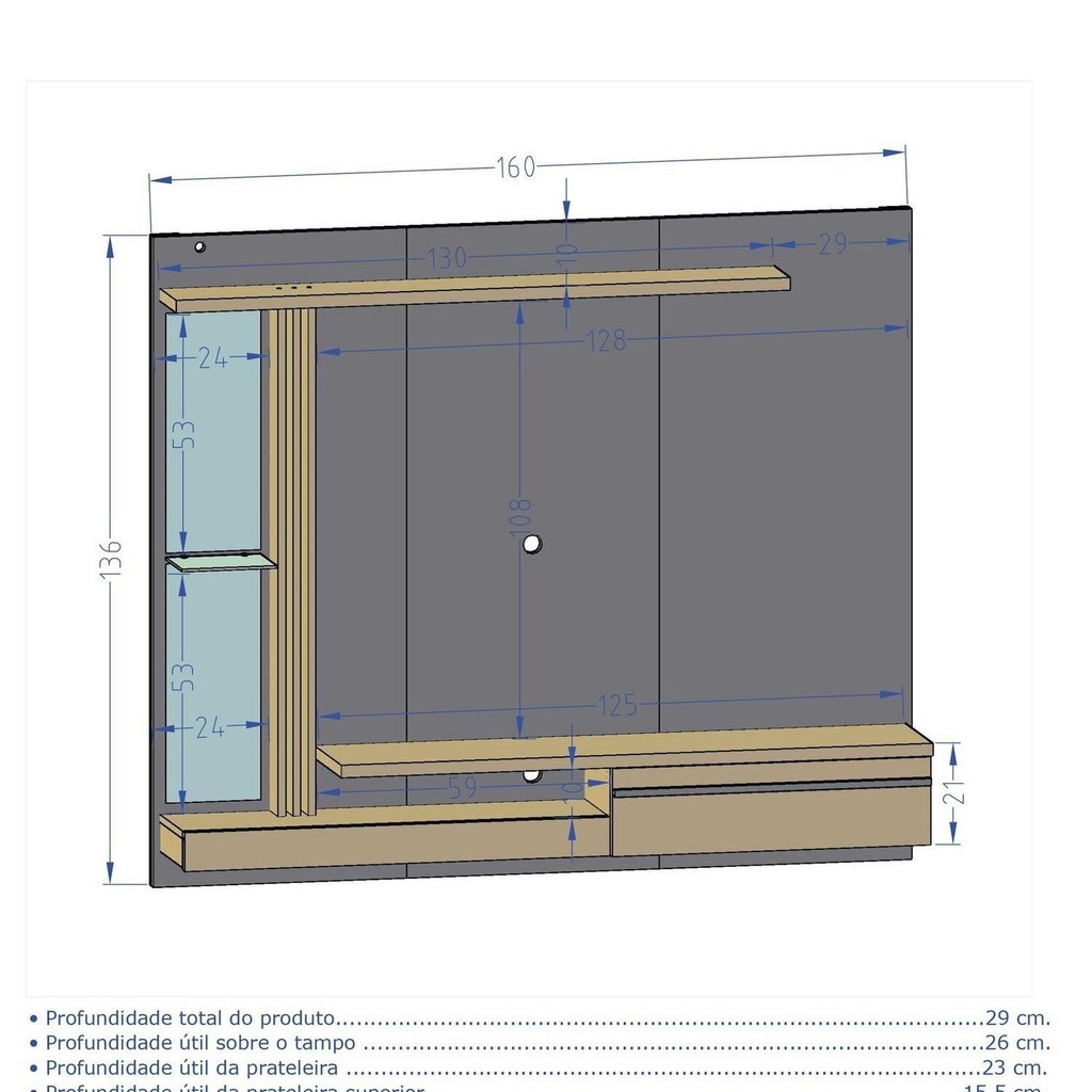 Painel para Tv 55 Polegadas Led Prateleira de Vidro Denver Fendi/Freijó