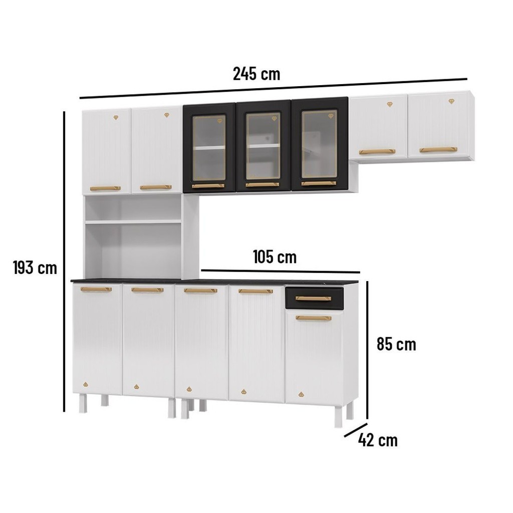 Cozinha de Aço Compacta 4 Peças 12 Portas 1 Gaveta Diamante Branco/Preto