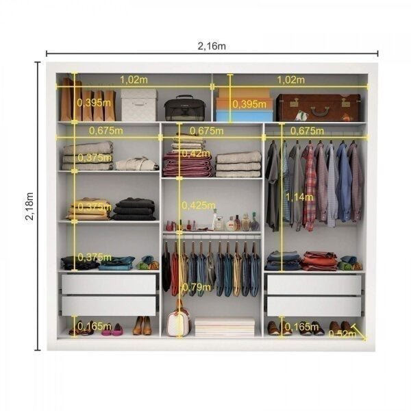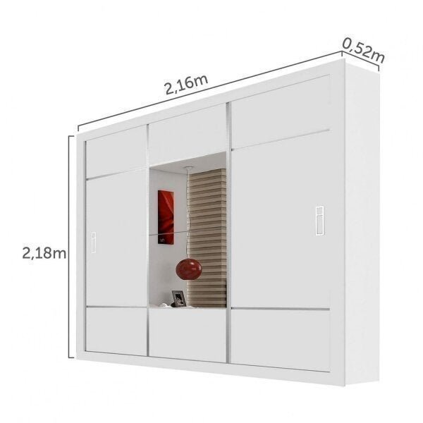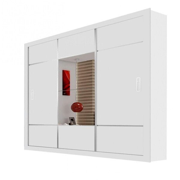 Guarda-Roupa Casal com Espelho 3 Portas de Correr Lotse Espresso Móveis Branco