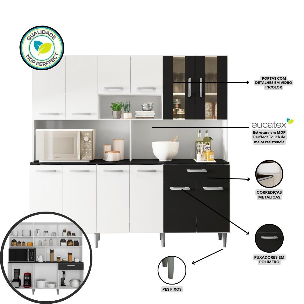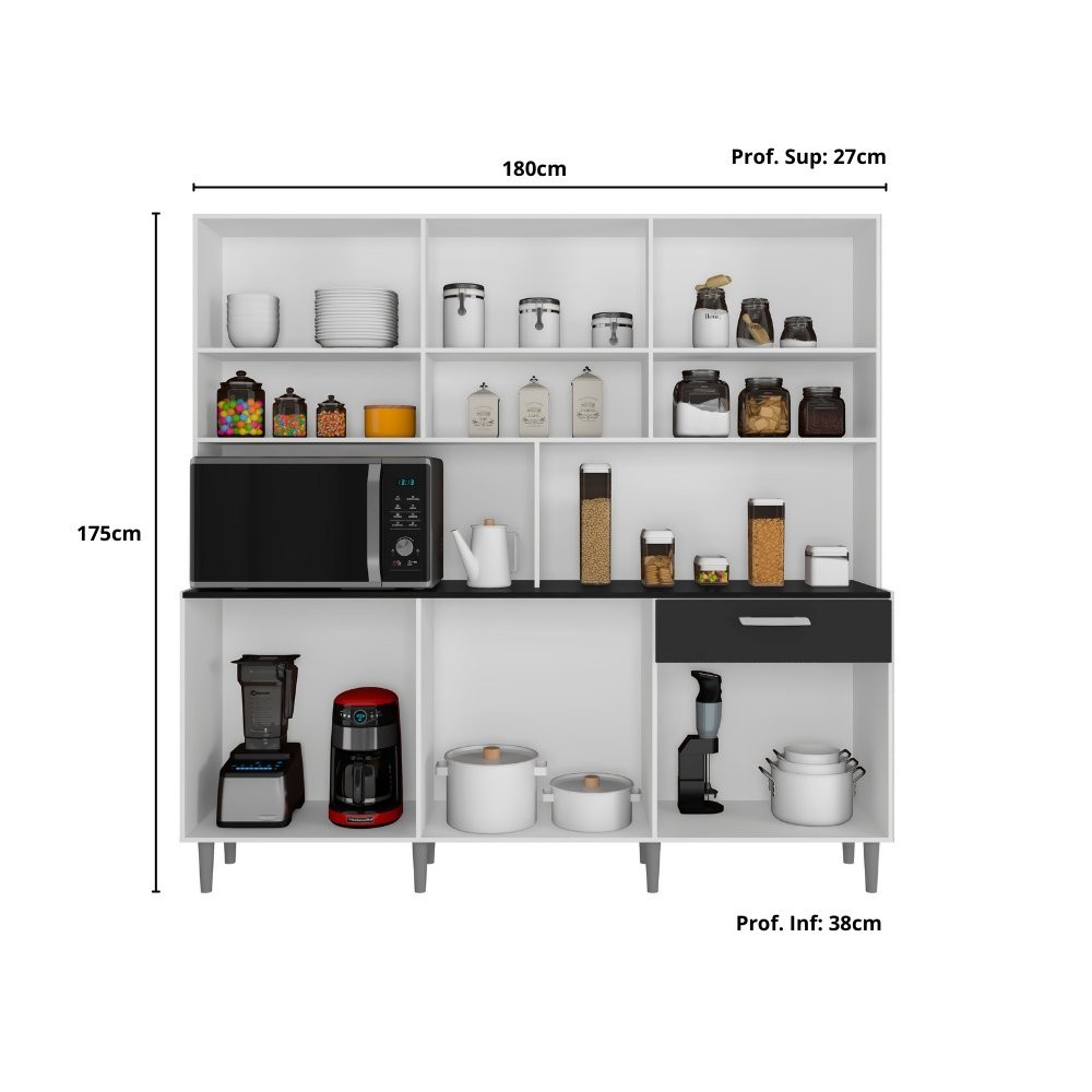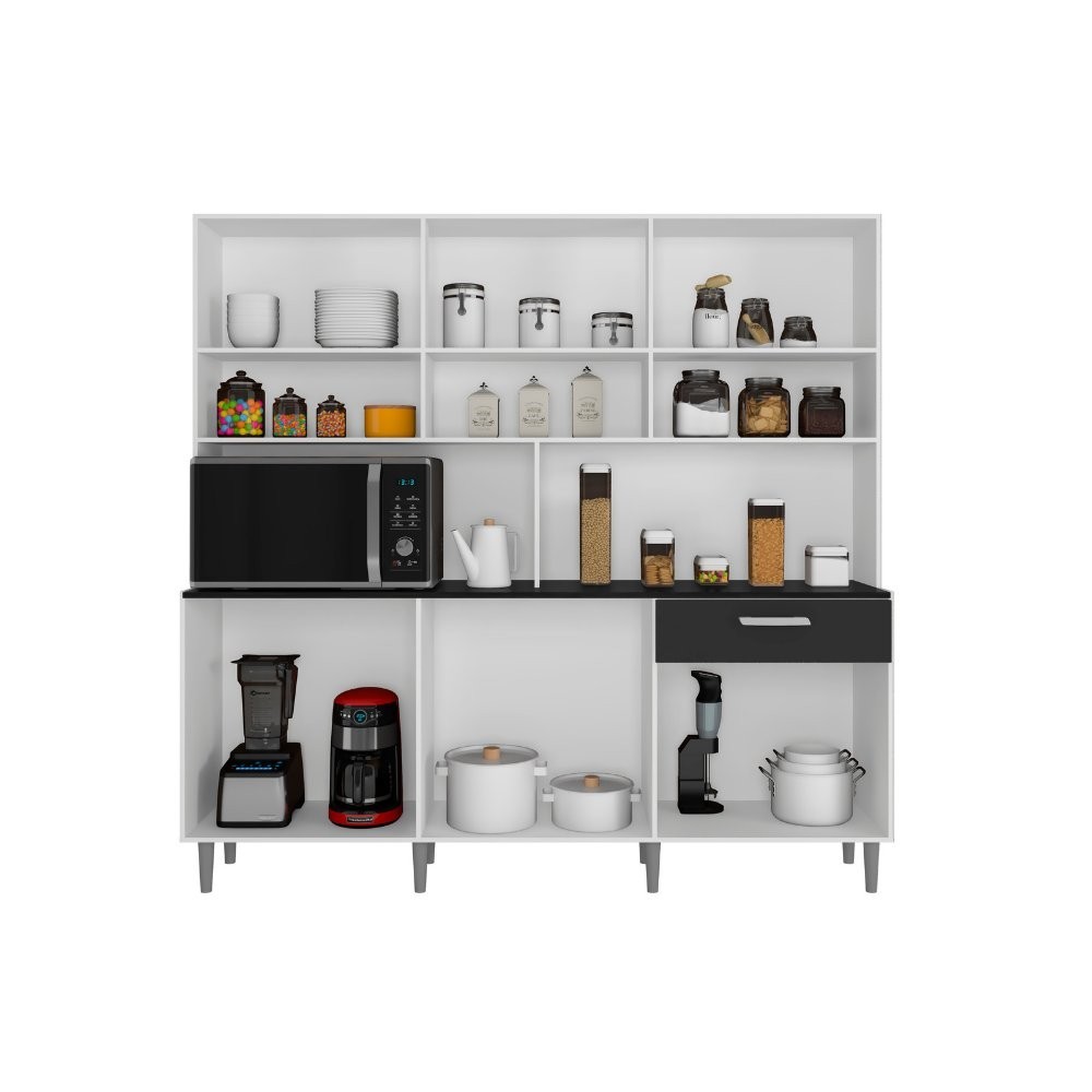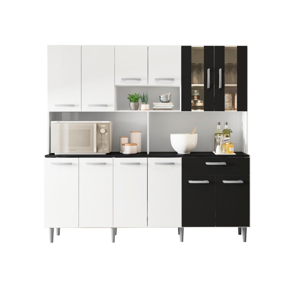Armário de Cozinha 12 Portas 1 Gaveta Clara Yescasa Branco/Preto