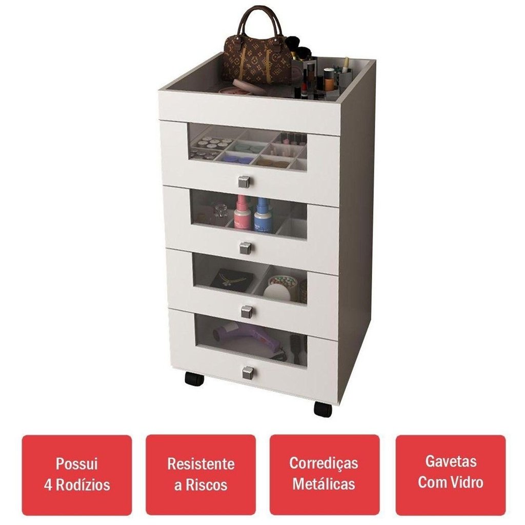 Gaveteiro Carrinho de Maquiagem 4 Gavetas Pe2009 Branco