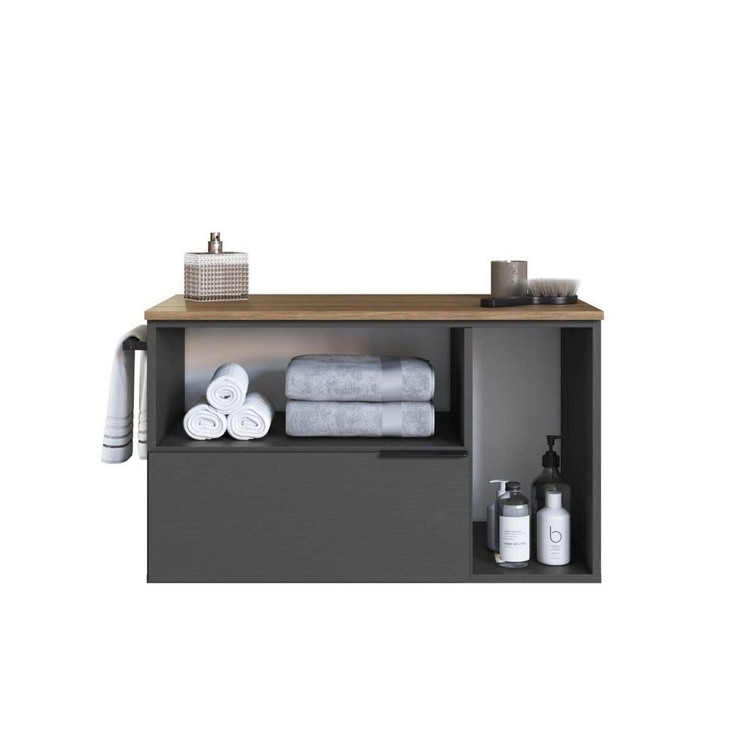 Gabinete de Banheiro Suspenso 80cm com 1 Toalheiro 2 Portas e 1 Gaveta Mel/Grafite