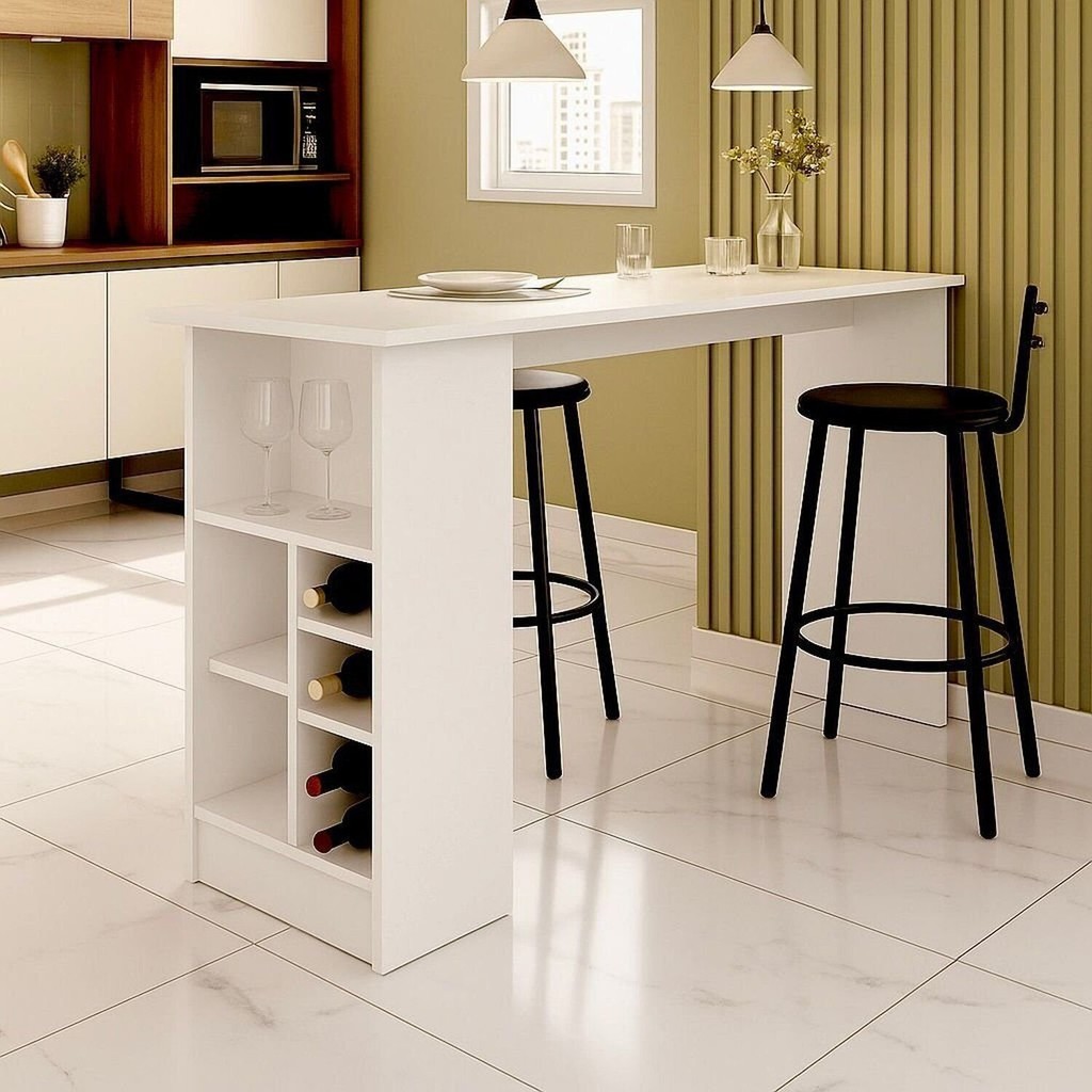 Bancada para Cozinha com Adega 1 Porta com Prateleira Realeza Branco