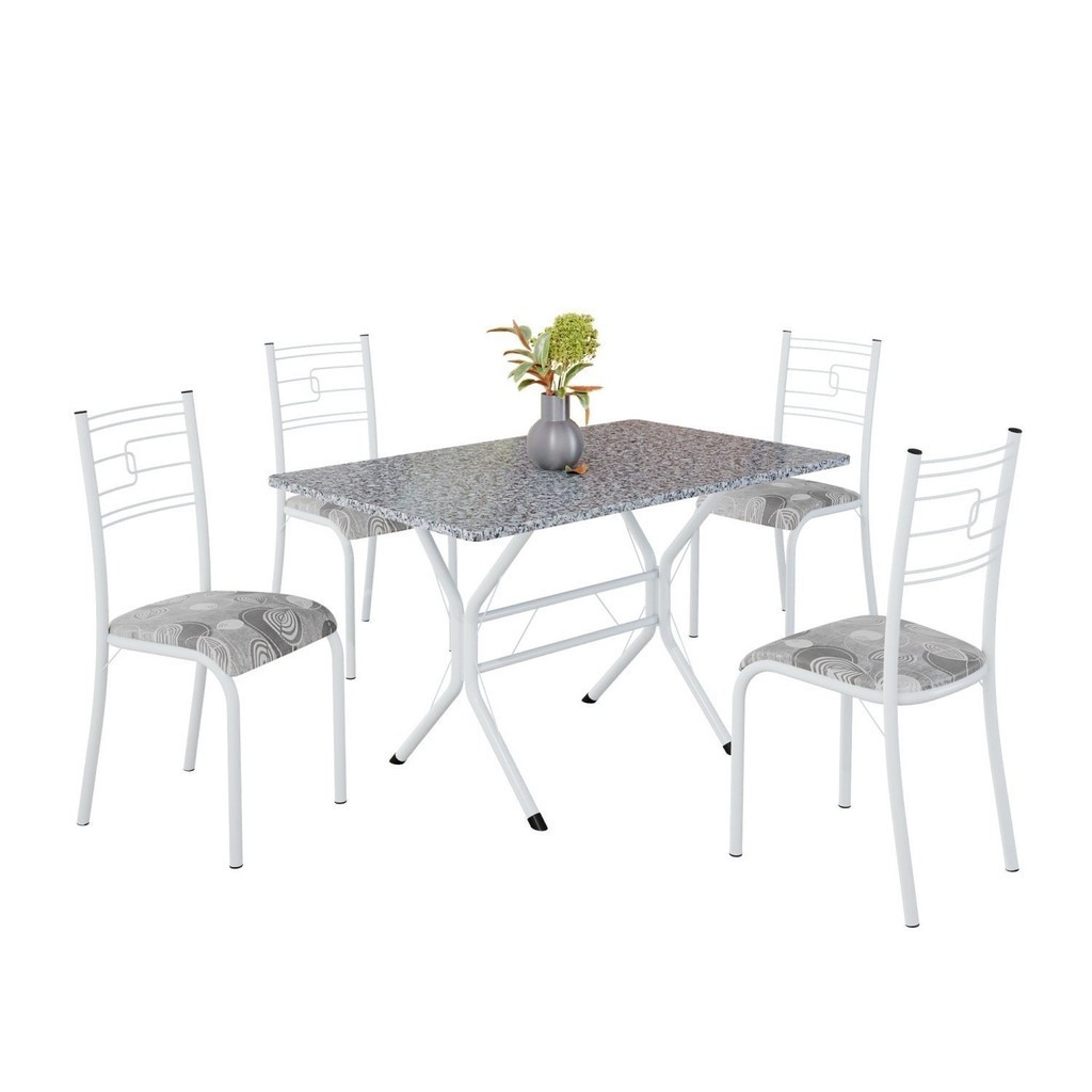 Conjunto Sala de Jantar Mesa Retangular 100x60cm Tampo Granito Ocre 4 Cadeiras Paraty Paraopeba/Branco