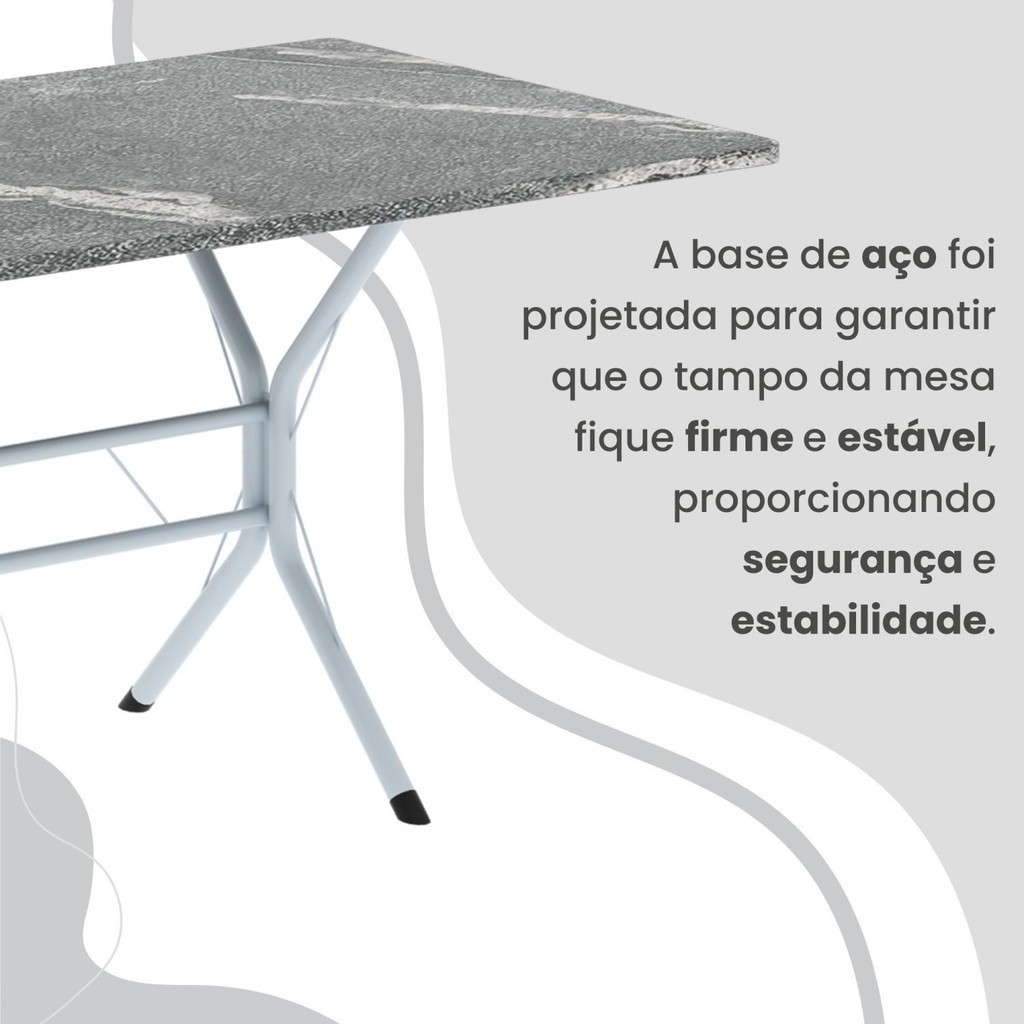 Conjunto Sala de Jantar Mesa Retangular 100x60cm Tampo Granito Topázio 4 Cadeiras Rio Marrom/Branco