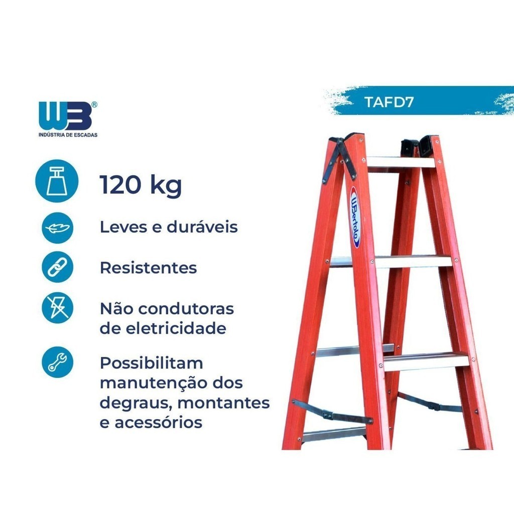 Escada em Fibra Tesoura Dupla 7 Degraus 2,10m WBertolo