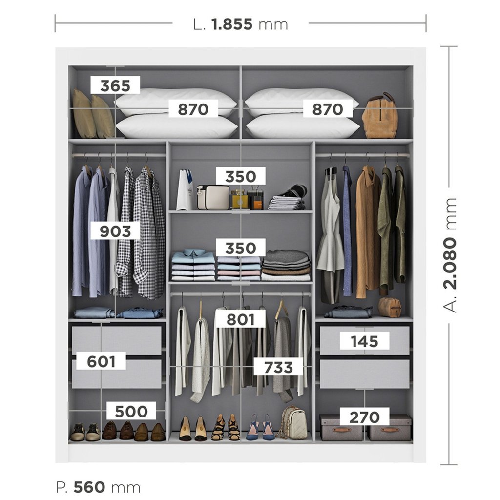 Guarda-Roupa Casal 3 Portas 4 Gavetas 185,5cm Viena Yescasa Branco