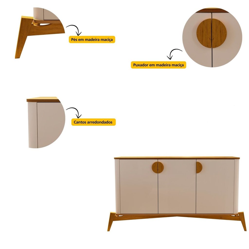 Buffet Buriti com Puxador e Pés em Madeira Maciça Off White/Nature