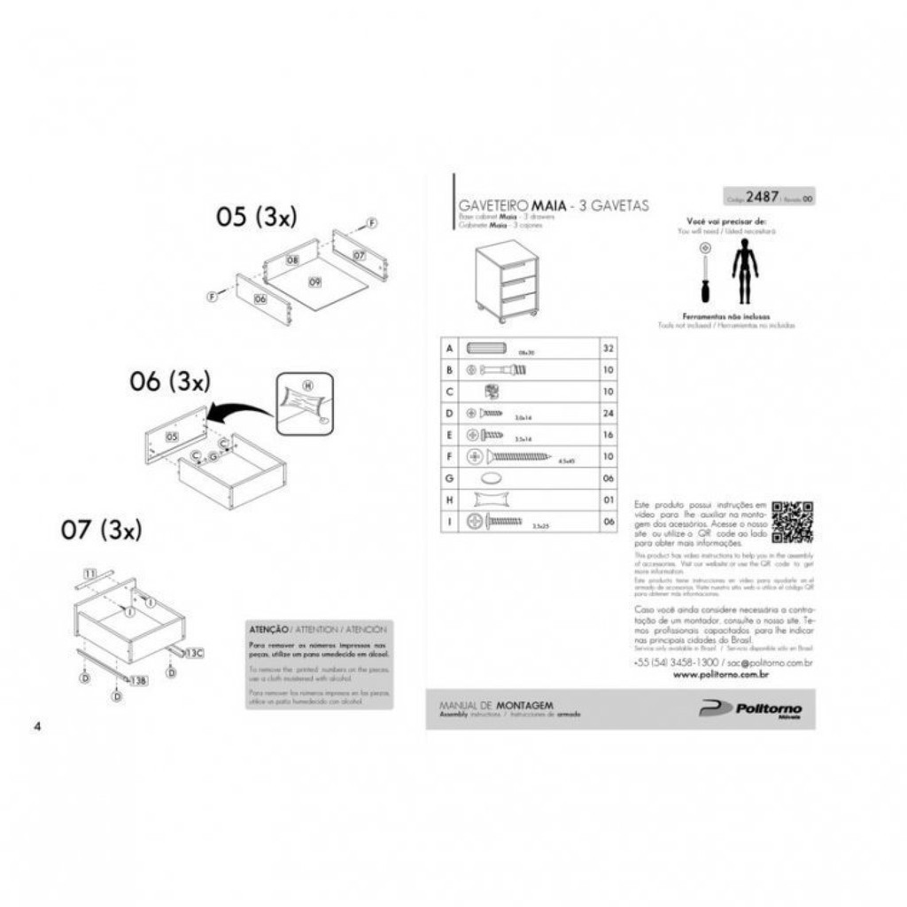 Kit 2 Gaveteiros para Escritório com Rodízio com 3 Gavetas Maia Branco