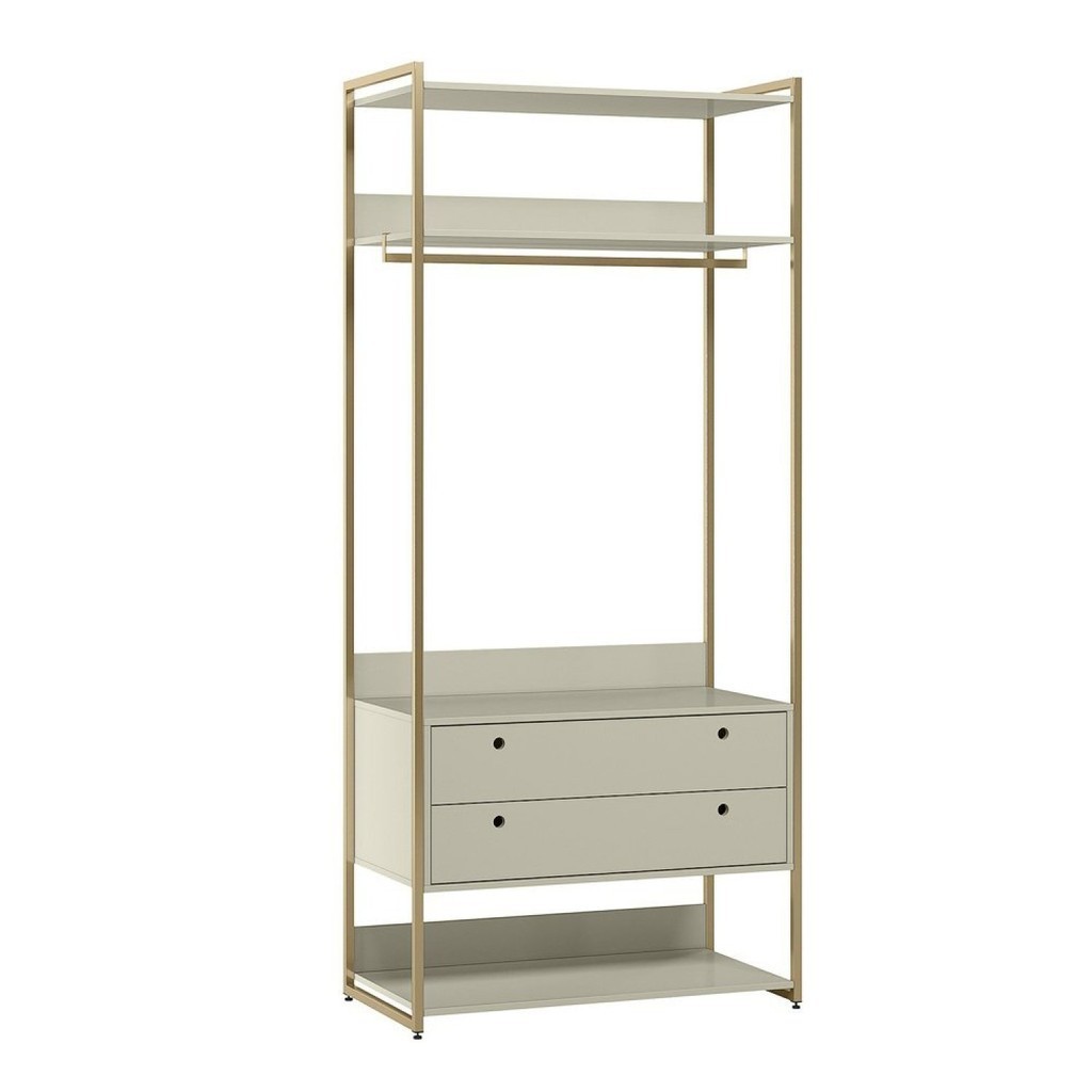 Modulo Closet Industrial com Cabideiro 2 Gavetas 89cm - Estrutura Metálica Moderna Off White