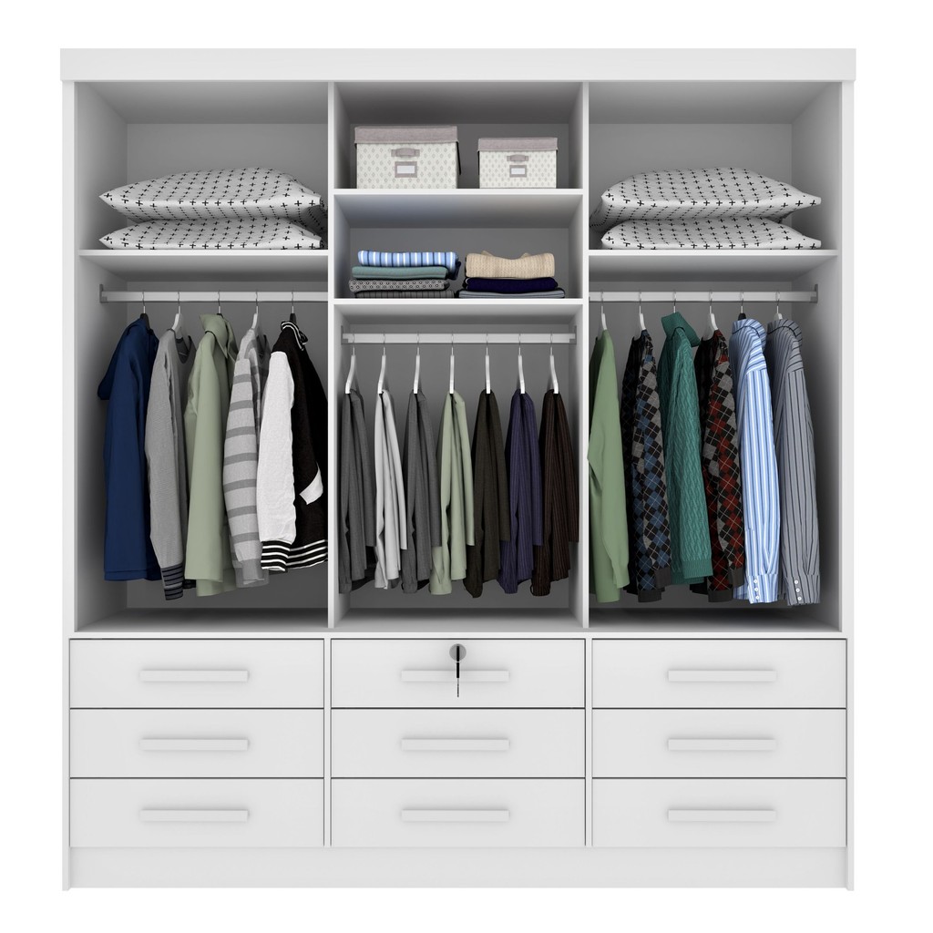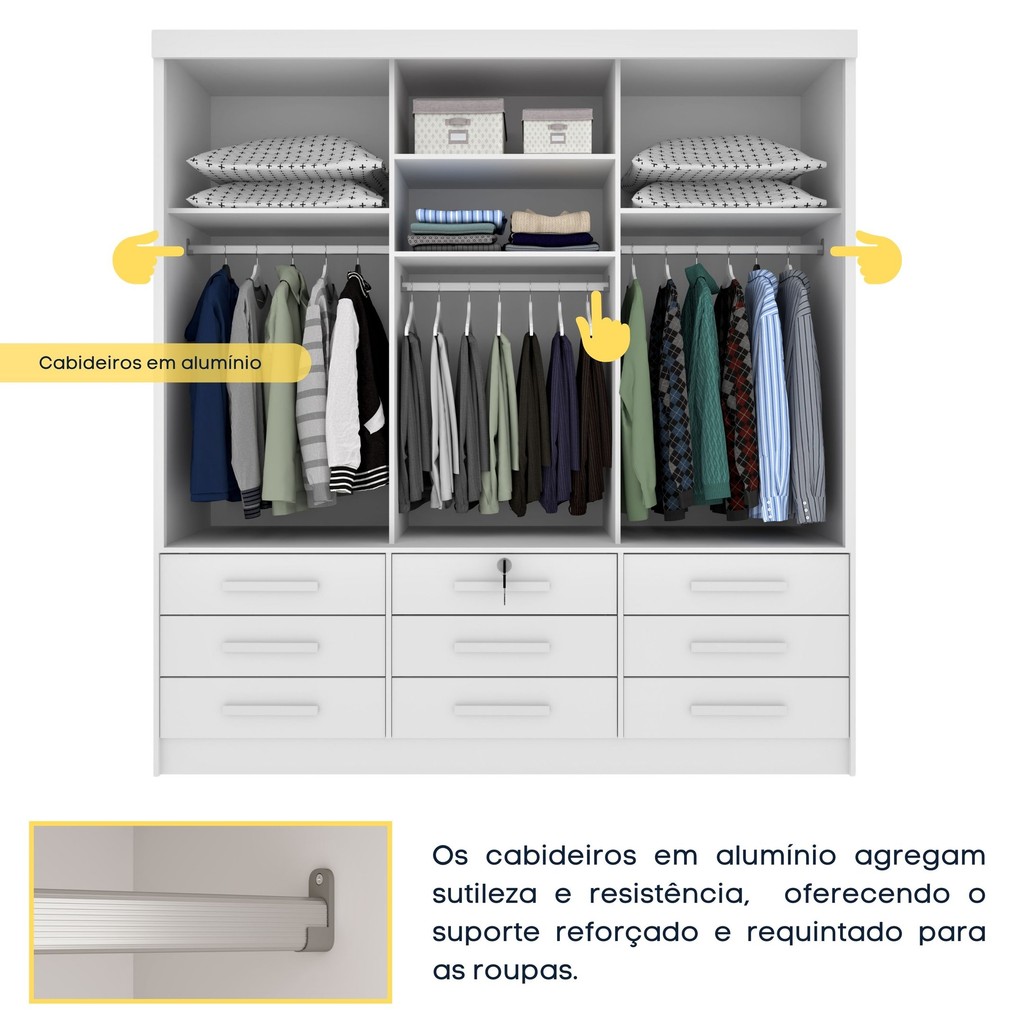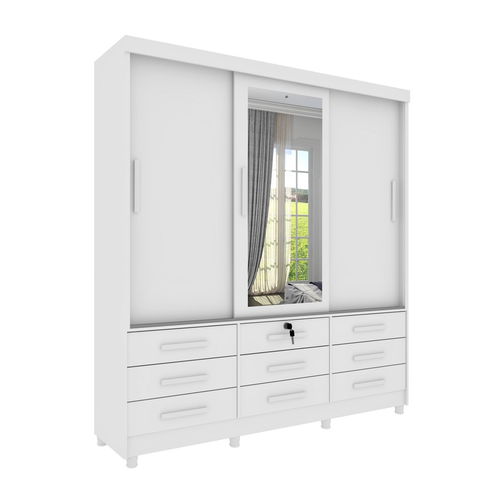 Guarda Roupa Casal com Espelho e pés 3 Portas 9 Gavetas 199cm Chicago Neve