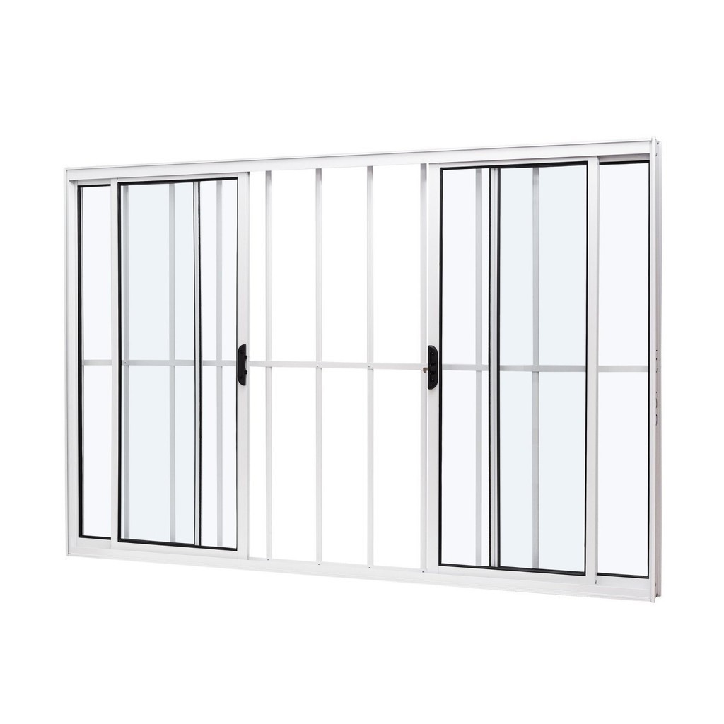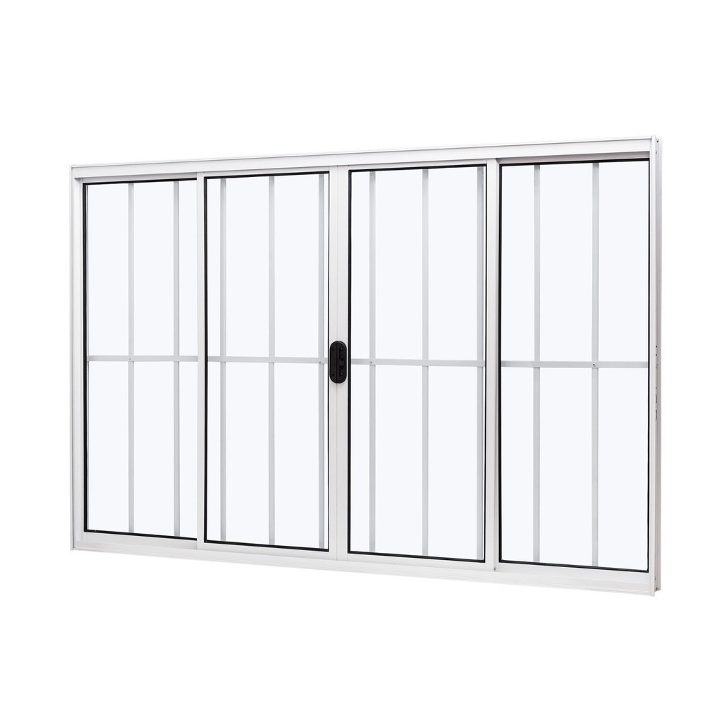 Janela de Alumínio de Correr Central 100x120cm 4 Folhas com Grade e Vidro Liso Slim Modular Ramassol