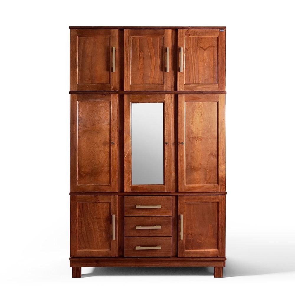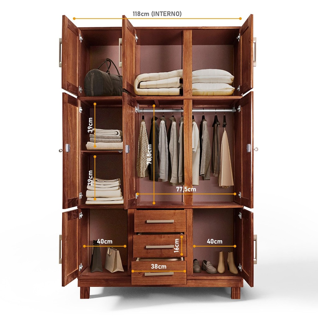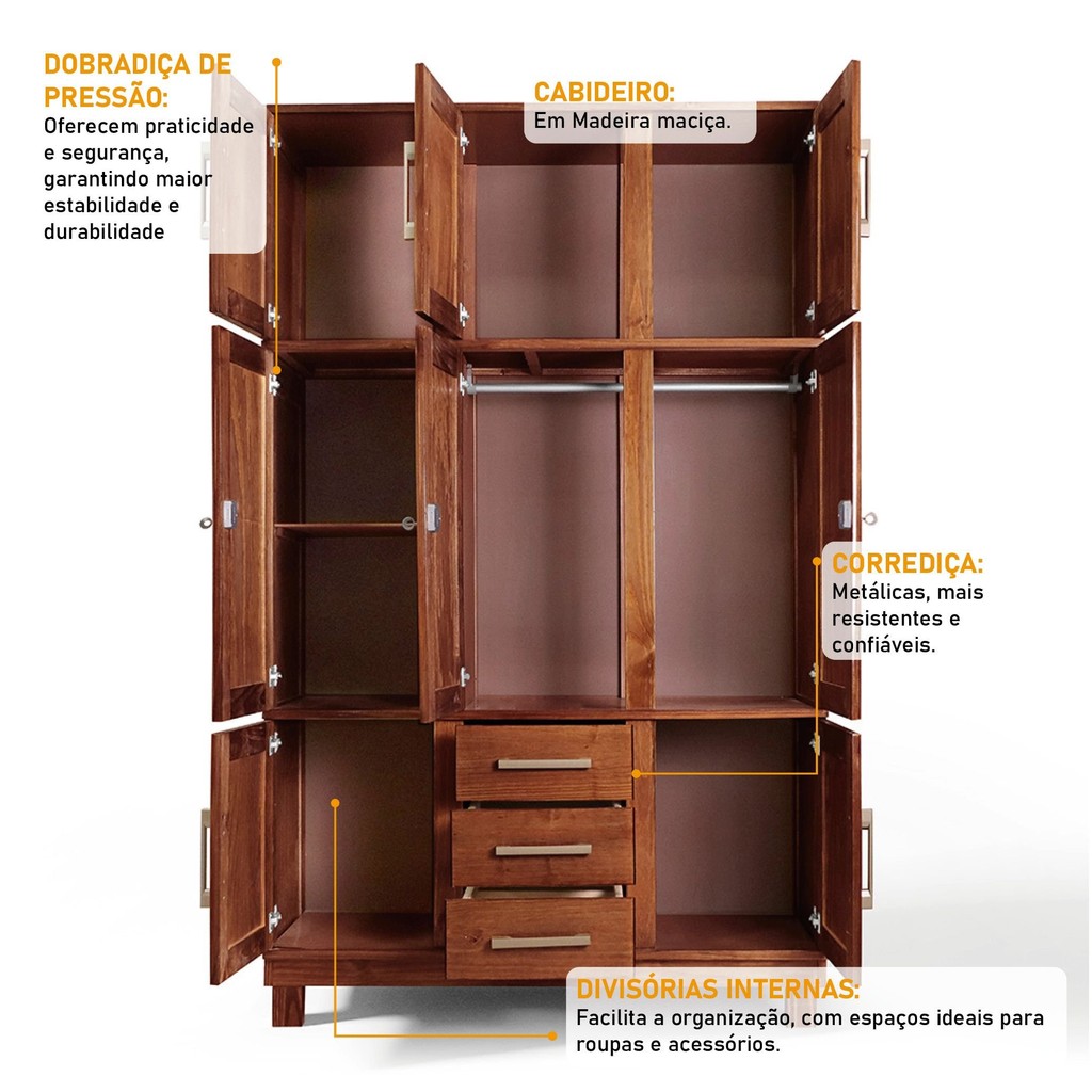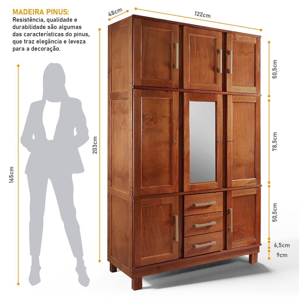 Guarda Roupa Solteiro com Espelho e Pés 8 Portas 3 Gavetas Paris Lanes Móveis Mogano
