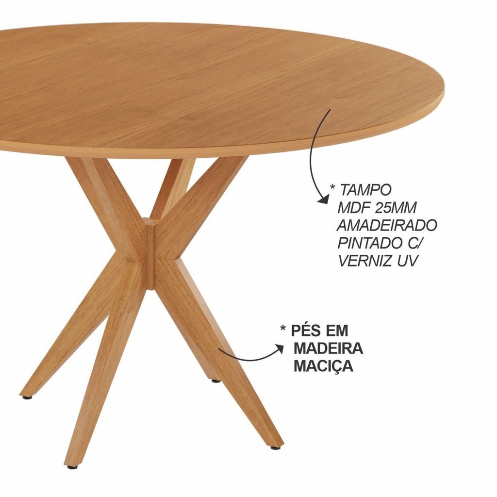 Mesa Simpatia Candian 108cm Redonda sem Vidro Tampo Amadeirado Cinamomo