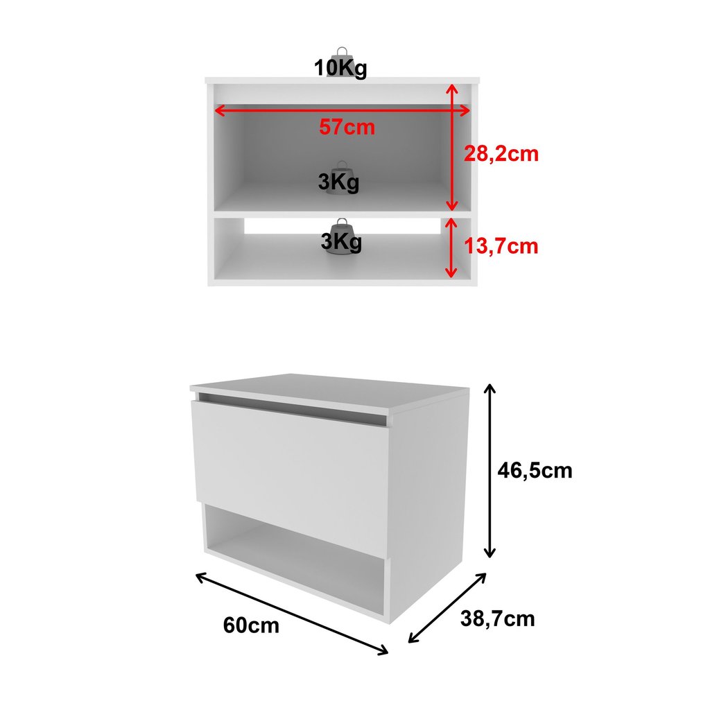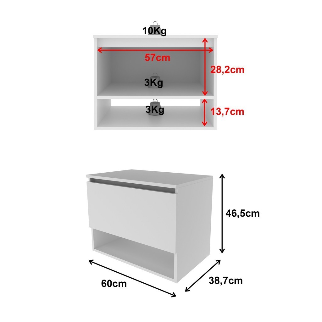 Balcão Gabinete Suspenso para Banheiro 60cm com 1 Porta e Nicho BN3606 Branco