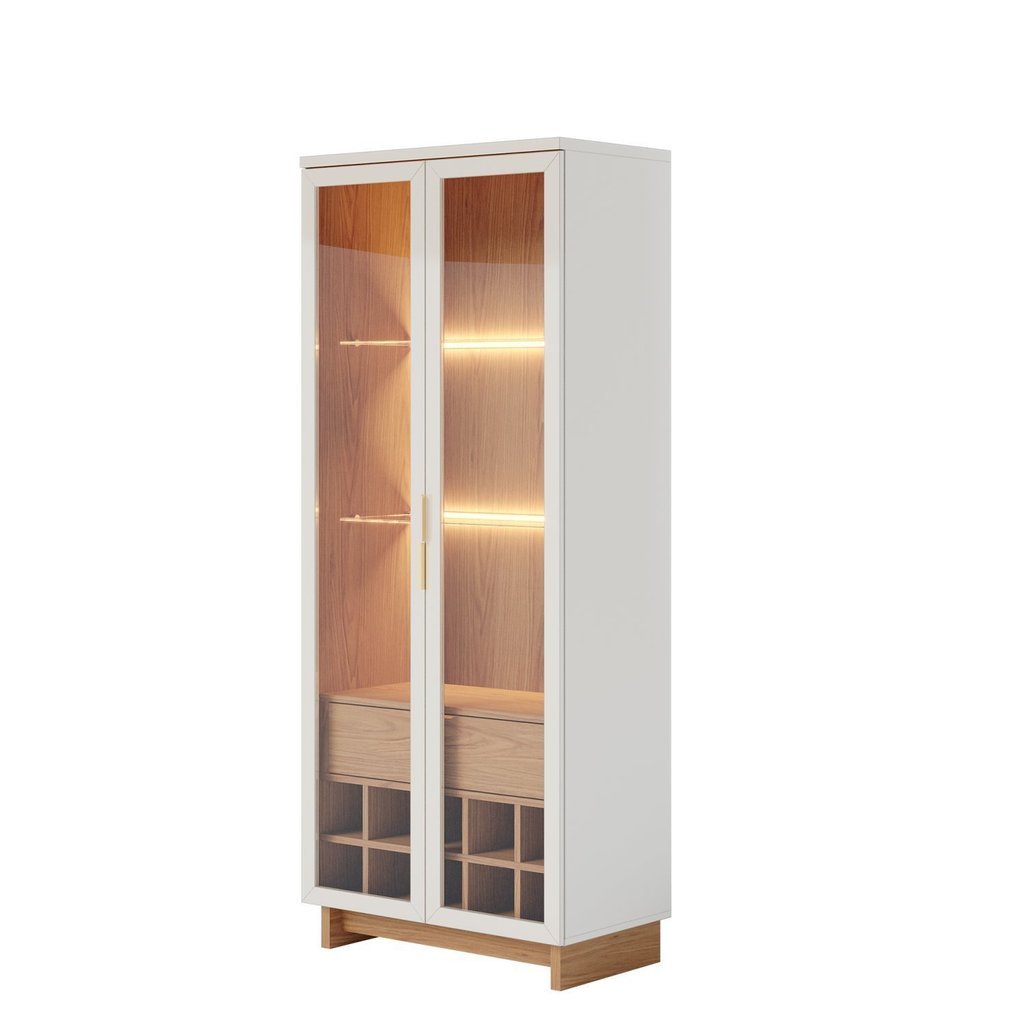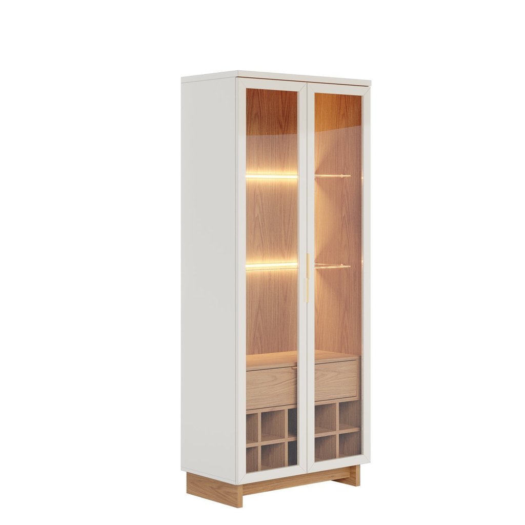 Cristaleira 2 Portas 1 Gaveta com Adega Guanabara Móveis Off White/Freijó