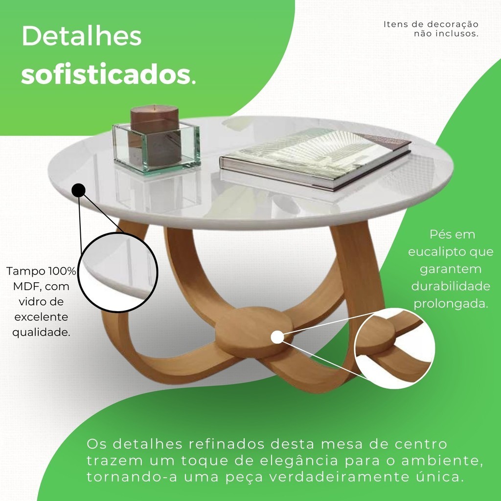Mesa de Centro Redonda 50cm Rubi Off White/Mel