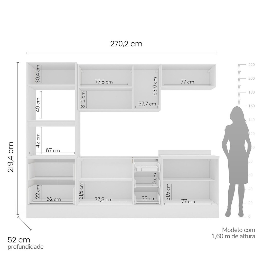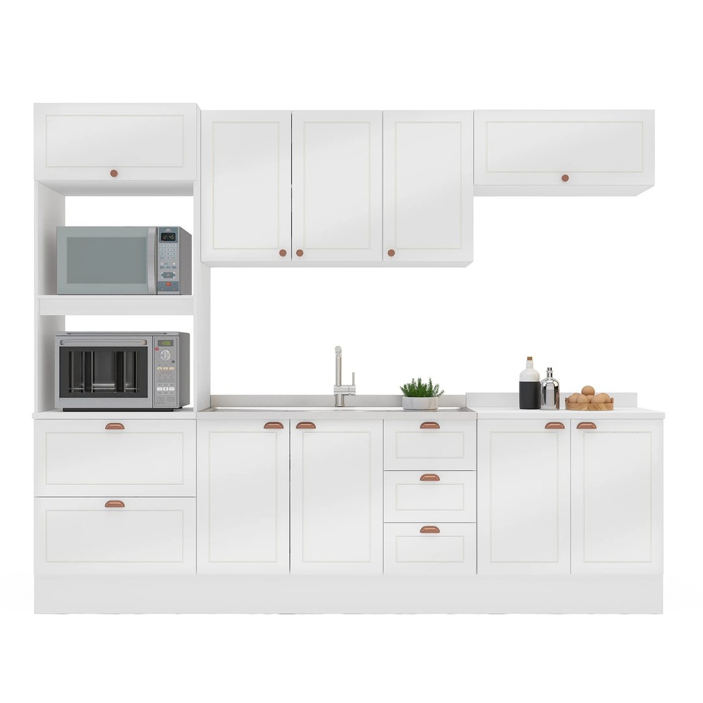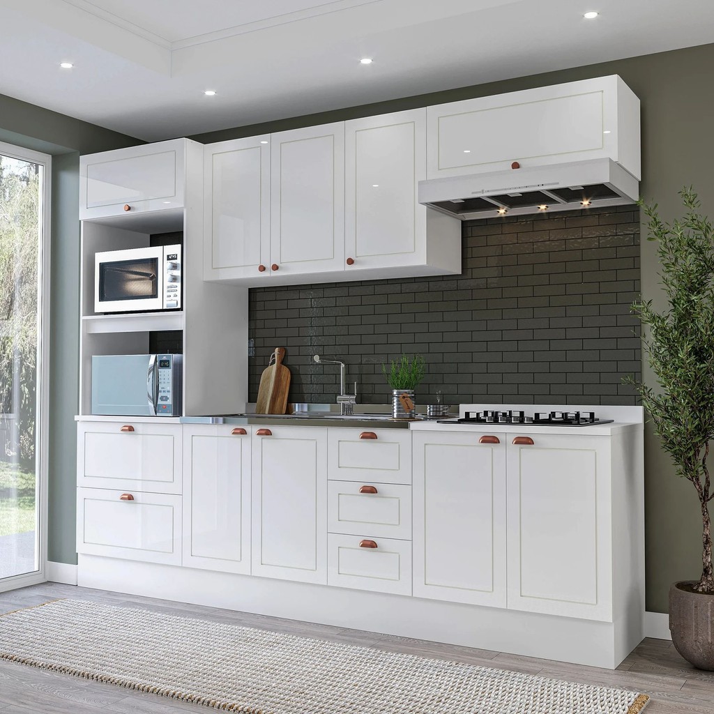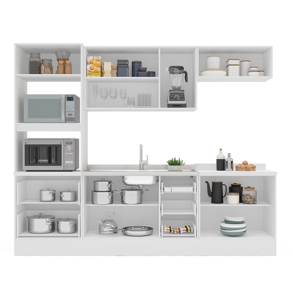 Cozinha Pérola com Rodapé 5 Peças Torre Quente Aéreo 3 Portas Balcão 120 Balcão 80 e Basculante Yesc Branco