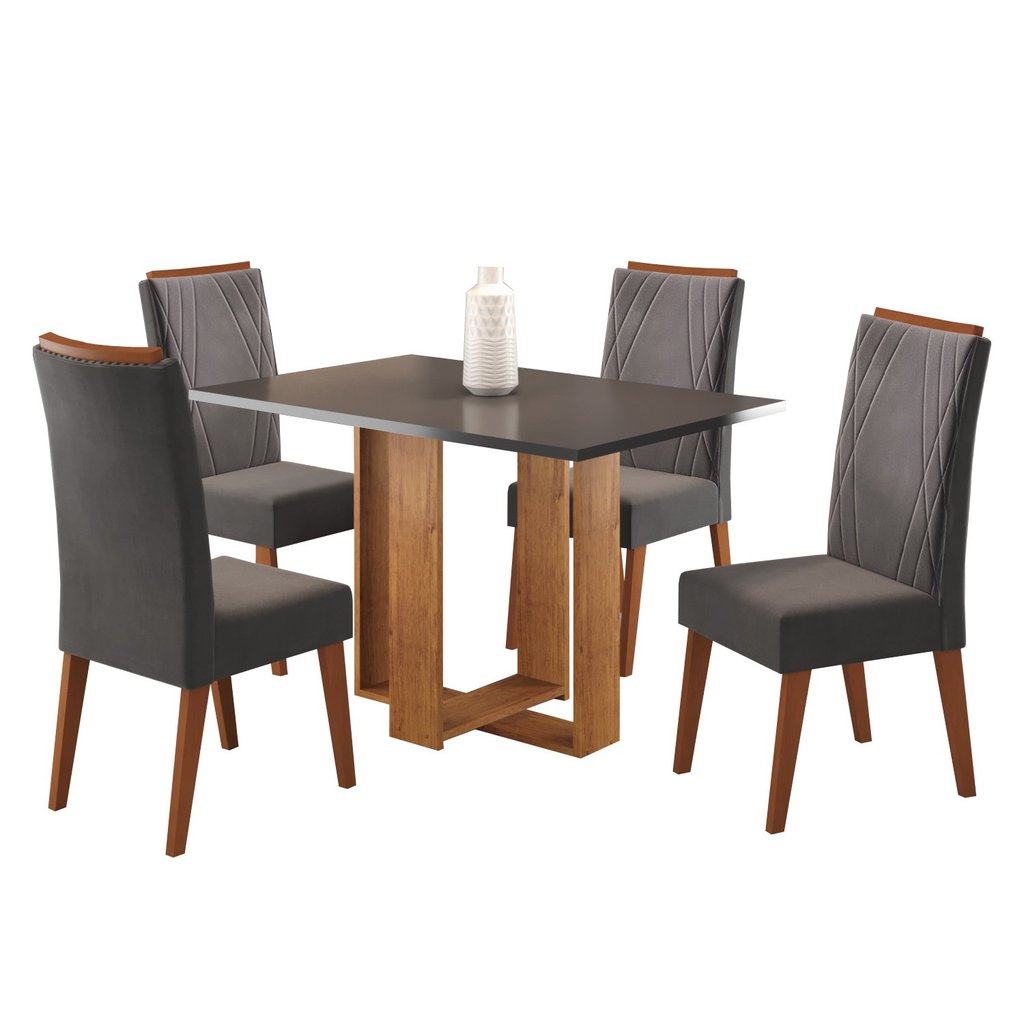 Mesa de Jantar Retangular Dinamarca com 4 Cadeiras Madeira Maciça Vegas Mel/Grafite