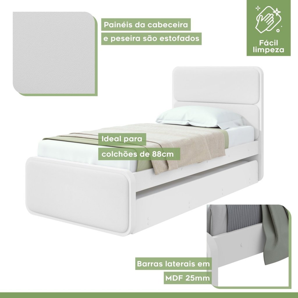 Cama Solteiro Loop Tecido Korino com Cama Auxiliar Branco