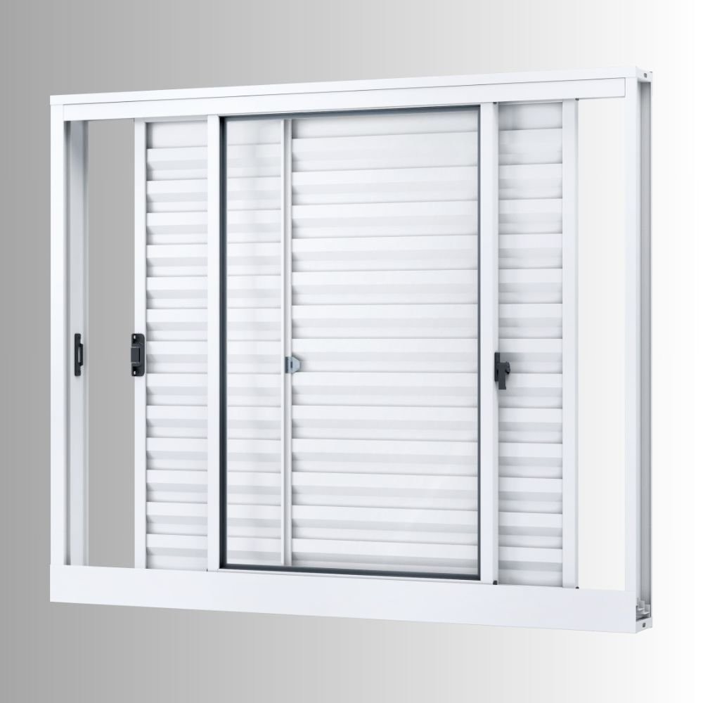 Janela de Alumínio Veneziana de Correr Lateral 3 Folhas Móveis 100x150cm Riobras Branco