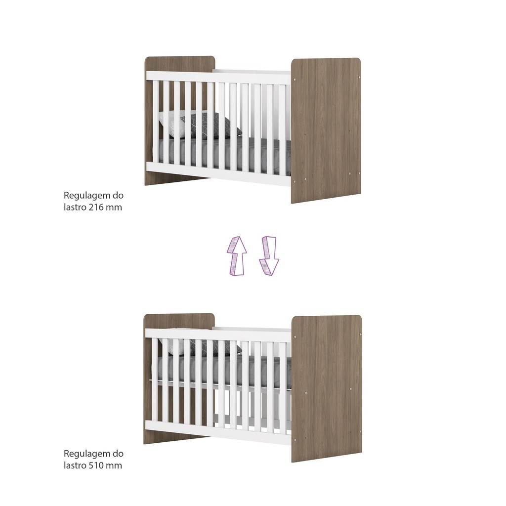 Quarto de Bebê Compacto com Berço e Guarda Roupa Sonho Encantado Espresso Móveis Rústico/Branco