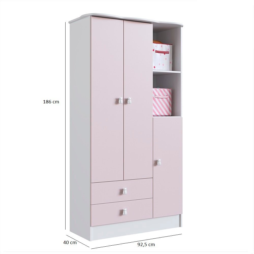 Quarto De Bebê Completo Berço Com Guarda Roupa 3 Portas 2 Gavetas 2 Nichos Algodao Doce Branco/Rosa