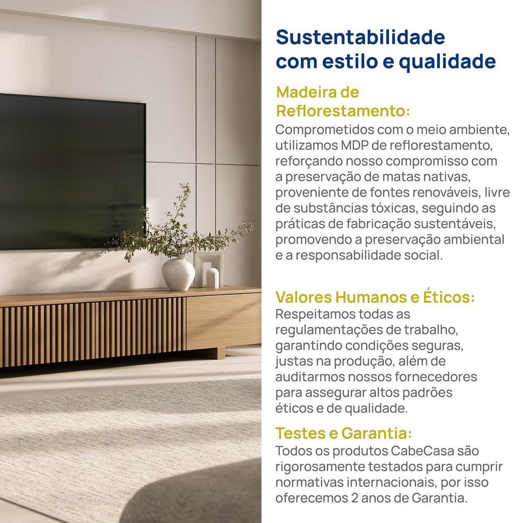 Rack para Tv até 75 Polegadas 210cm Portas Ripadas Aruá CabeCasa MadeiraOriginals 210