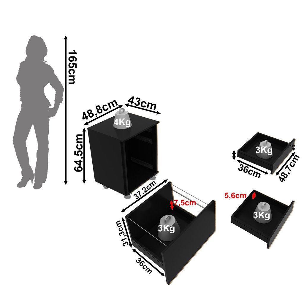 Gaveteiro Arquivo 48,8x64,5cm com Chave e Rodízio ME4148 Preto