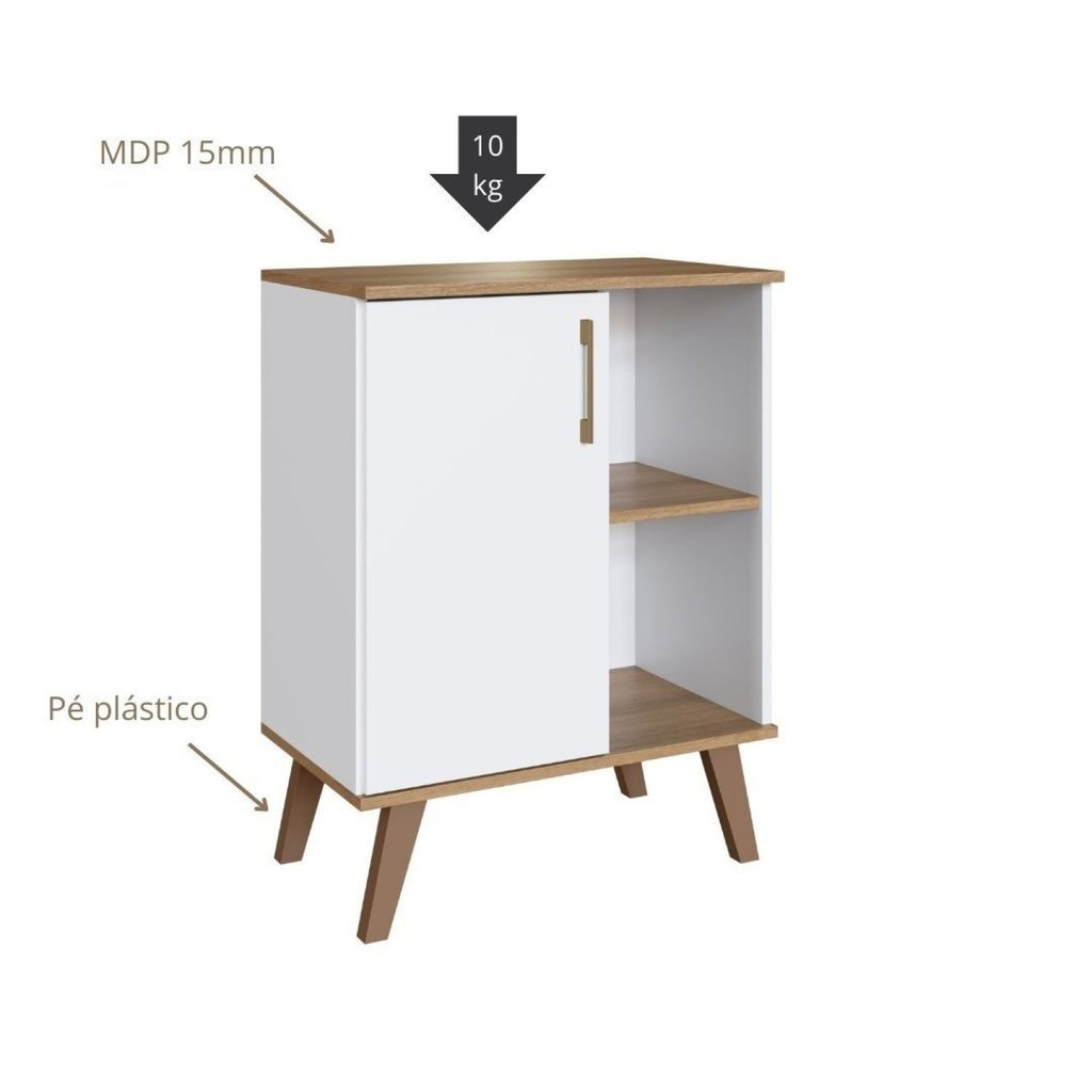 Gabinete para Banheiro 60cm com 1 Porta e 2 Prateleiras Ba305 sem Cuba Branco/Mel