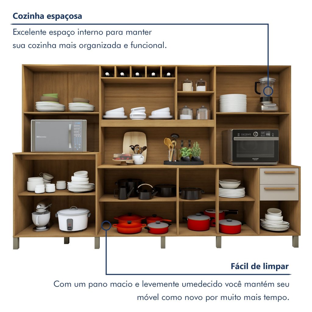 Armário para Cozinha 13 Portas 2 Gavetas Agata Cinamomo/Off White
