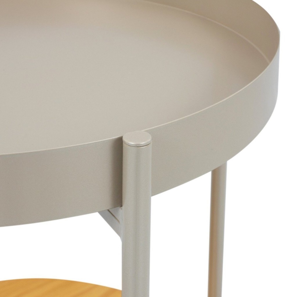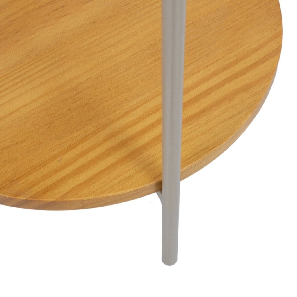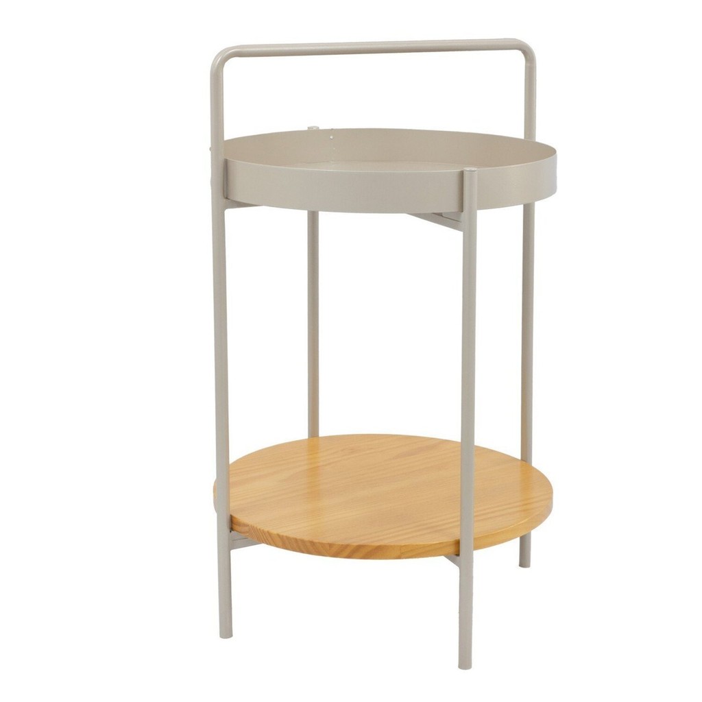 Mesinha Lateral Aura Redonda Apoio Bandeja Metal Madeira