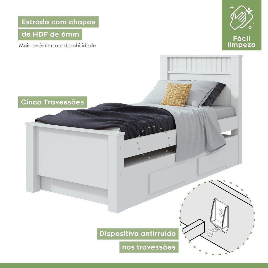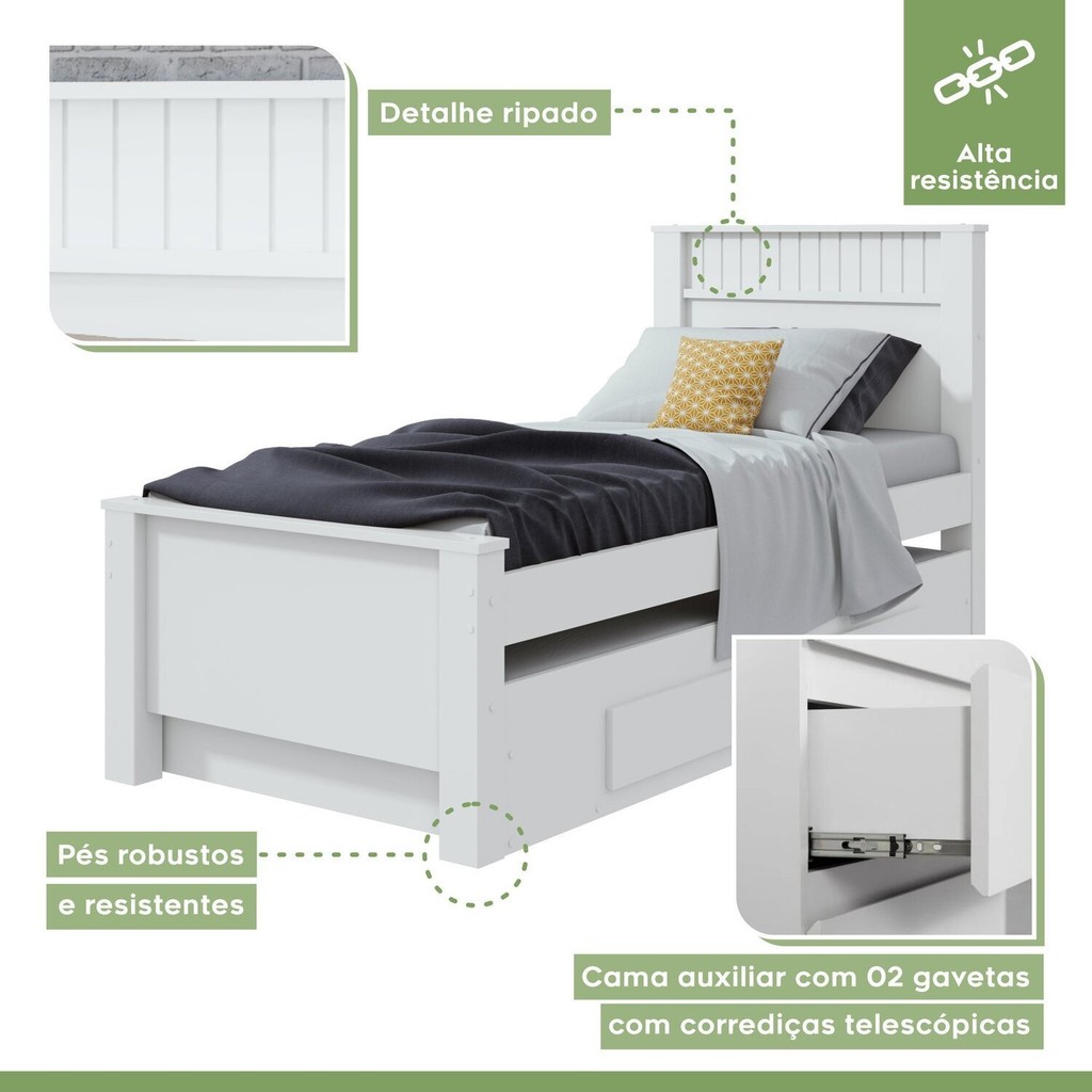 Bicama Infantil 2 Gavetas Athenas Kids Branco