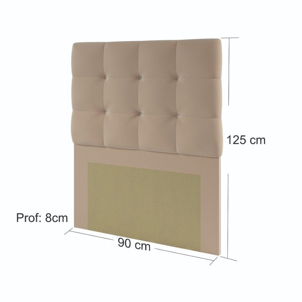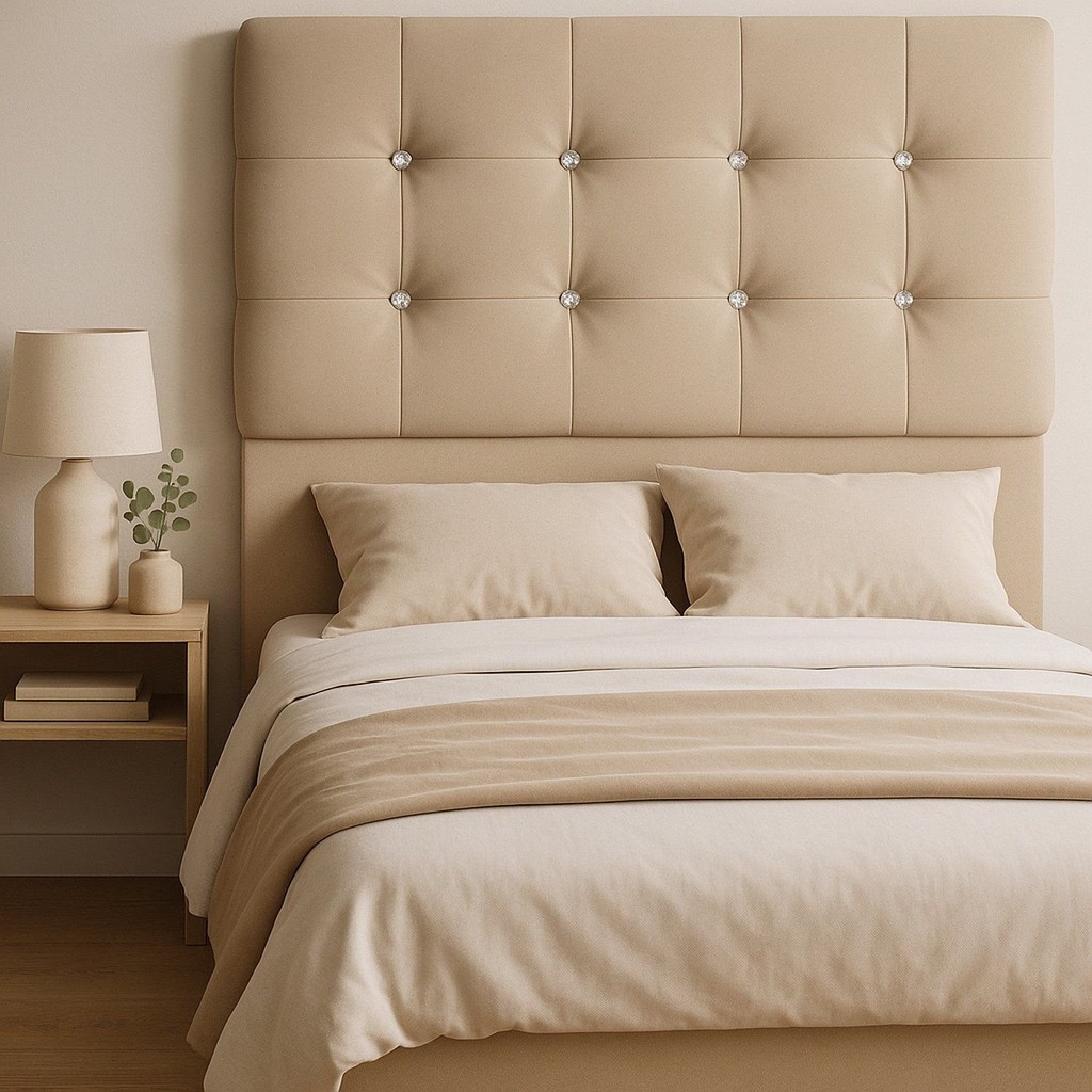 Cabeceira Estofada com Strass 90cm Solteiro Paris Bege