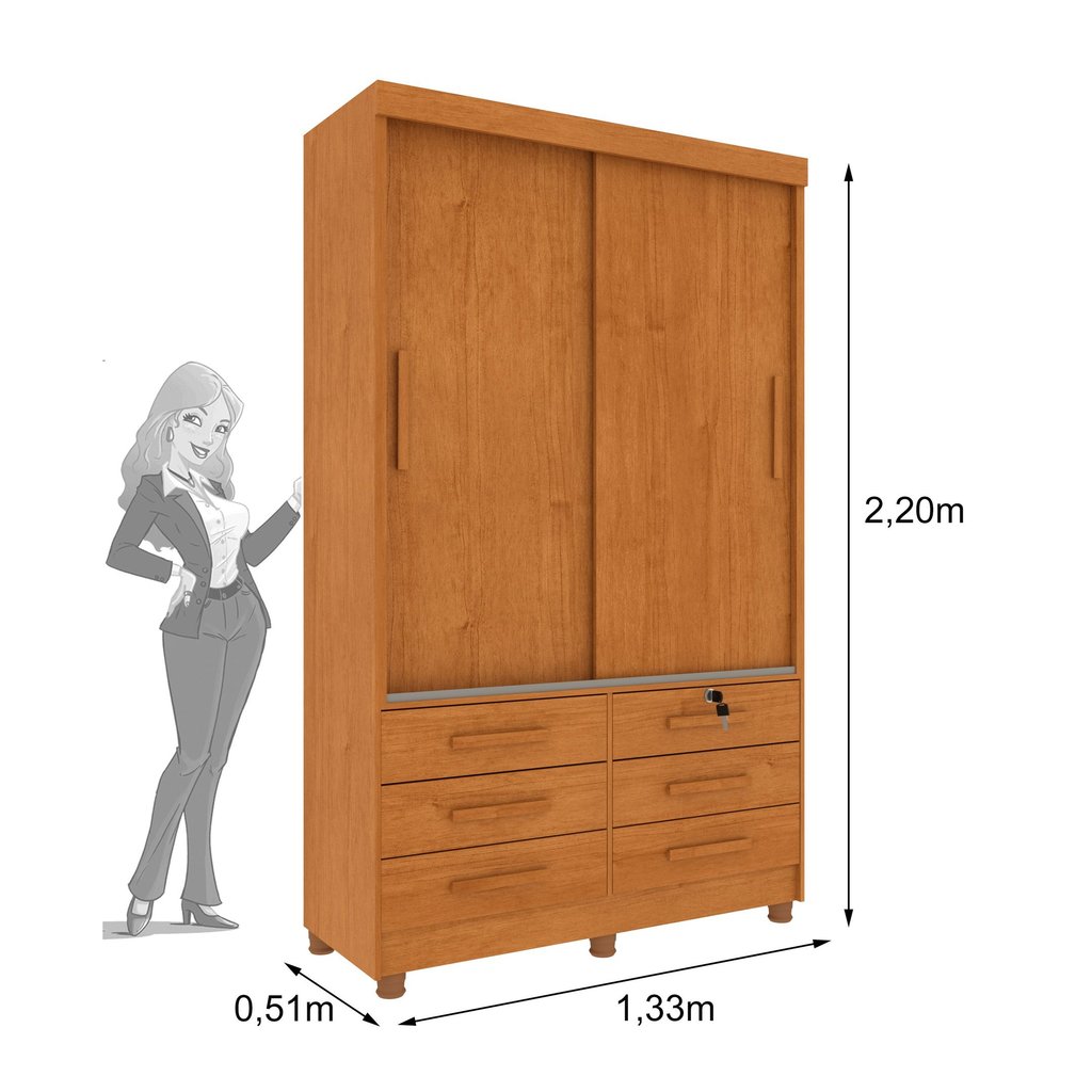 Guarda Roupa Solteiro com pés 2 Portas 6 Gavetas 133cm Chicago Cinamomo
