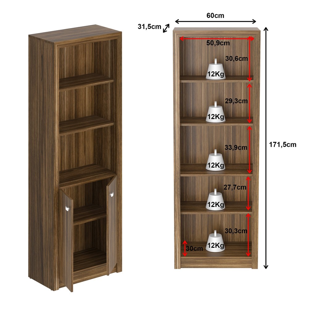 Armário Alto para Escritório 171,5x60cm com 2 Portas e 5 Prateleiras ME4110 Nogal