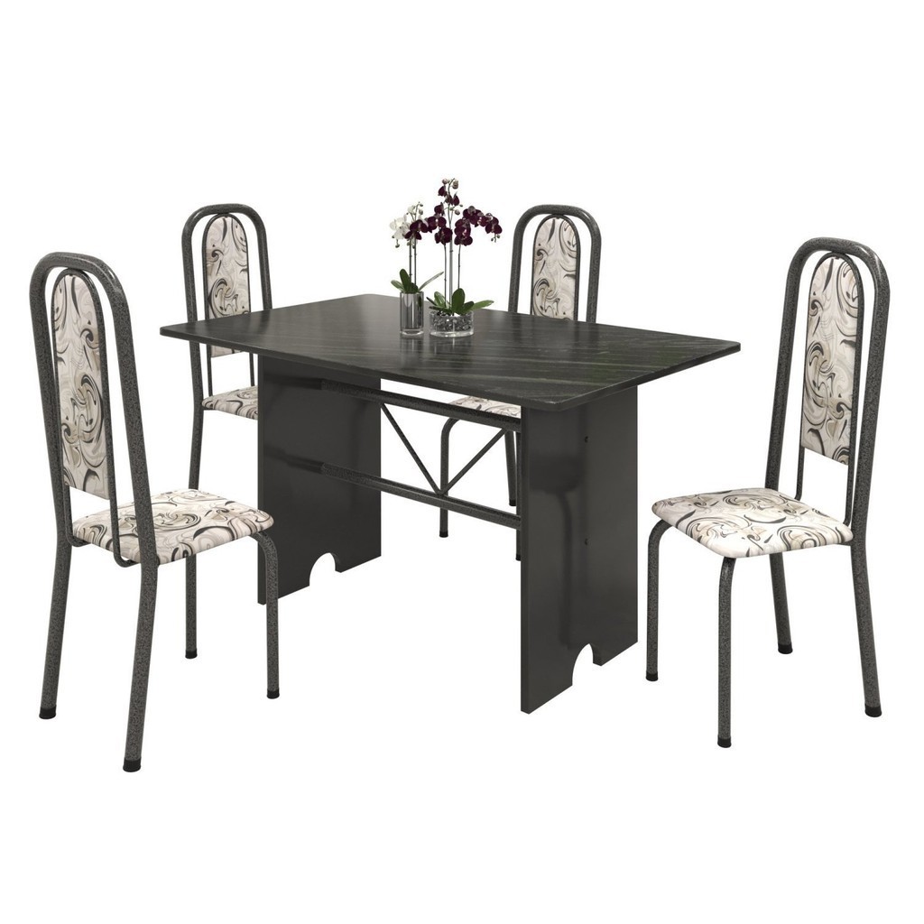 Conjunto de Mesa Tampo Ardósia 120x75cm com 4 Cadeiras Lavínea Martelado Prata/Ardósia Indiano/Arabesco