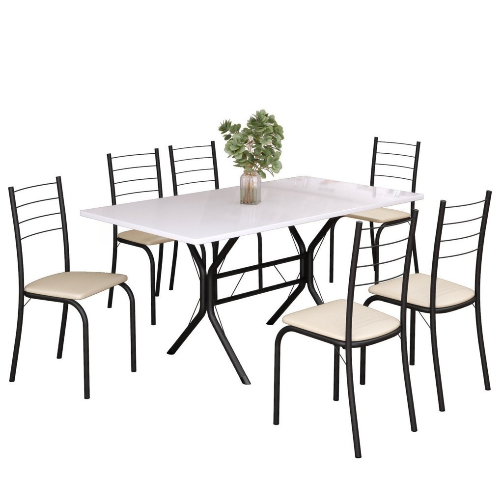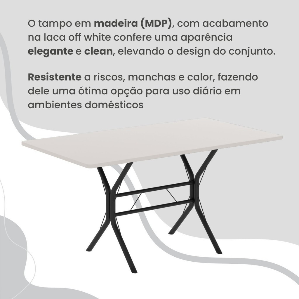 Conjunto Sala de Jantar Mesa Retangular 140x75cm Tampo Madeira Mdp 6 Cadeiras Rio Creme/Preto