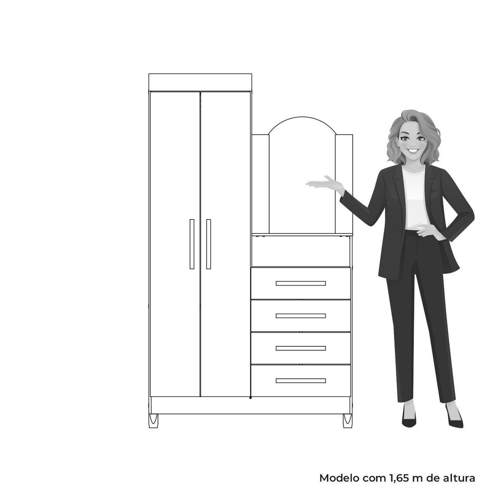 Guarda-roupa Cômoda 2 Portas e 4 Gavetas com Espelho New Capri