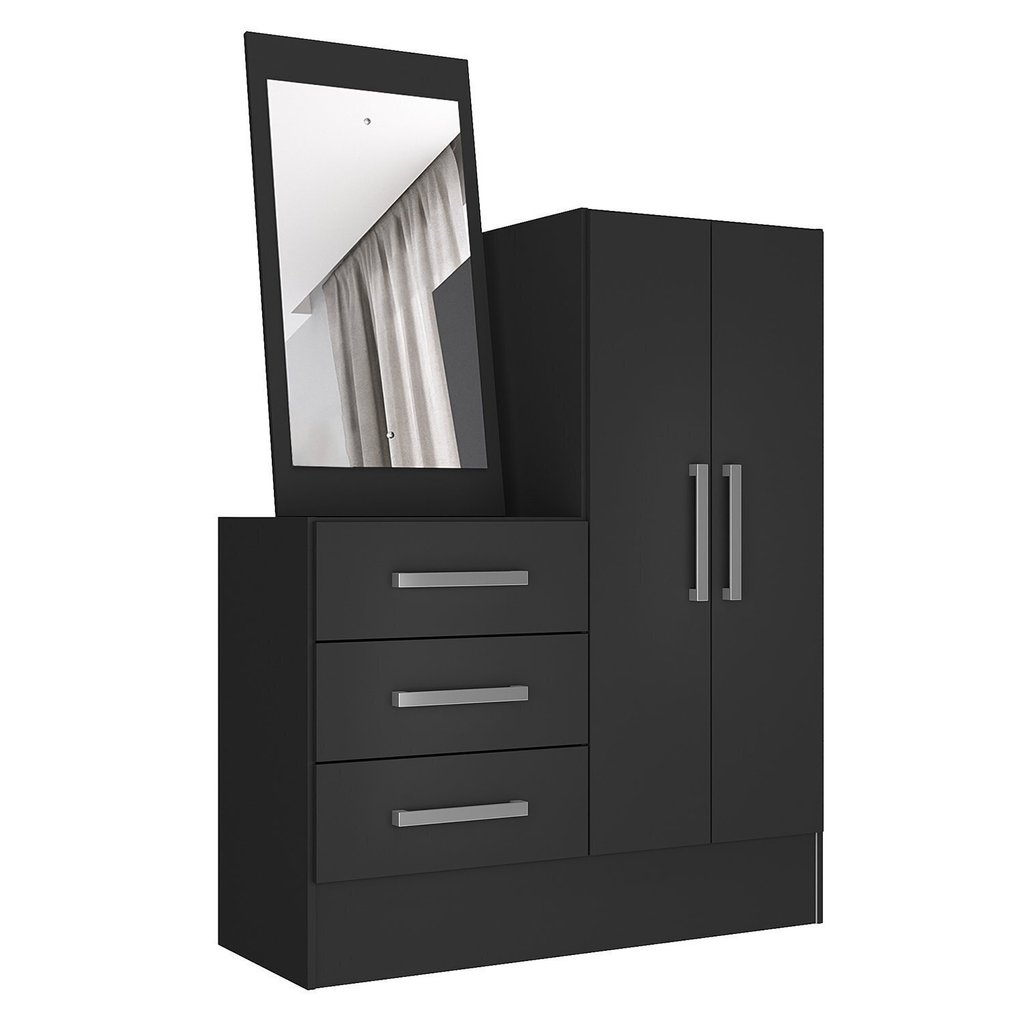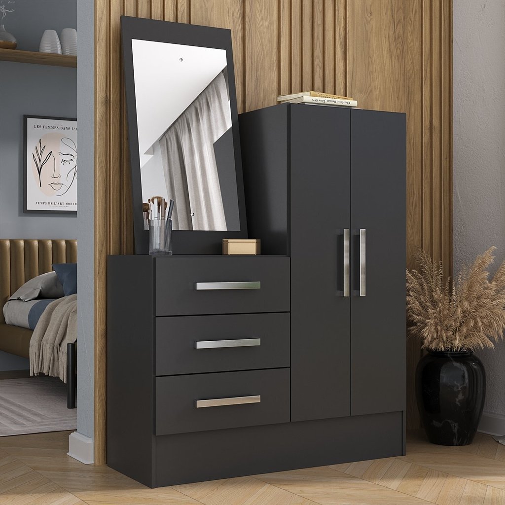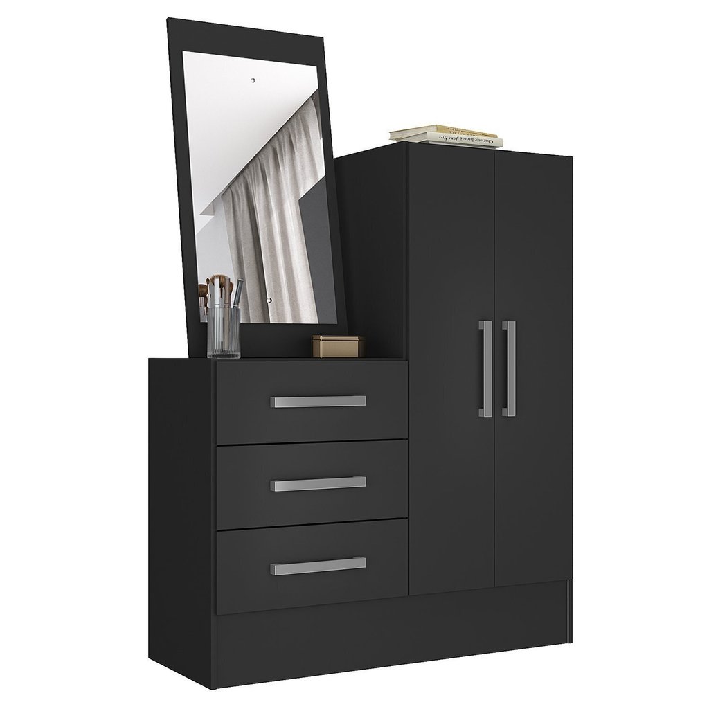 Cômoda para Quarto 3 Gavetas e 2 Portas com Espelho Dunas Preto
