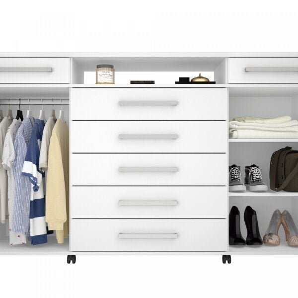 Cômoda 2 Portas 7 Gavetas Paris Espresso Móveis Branco